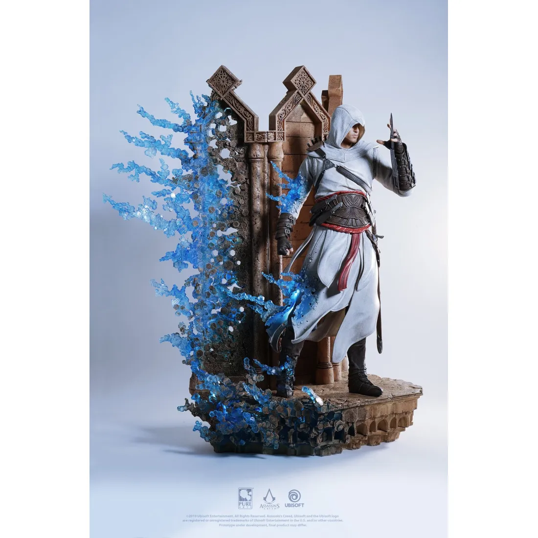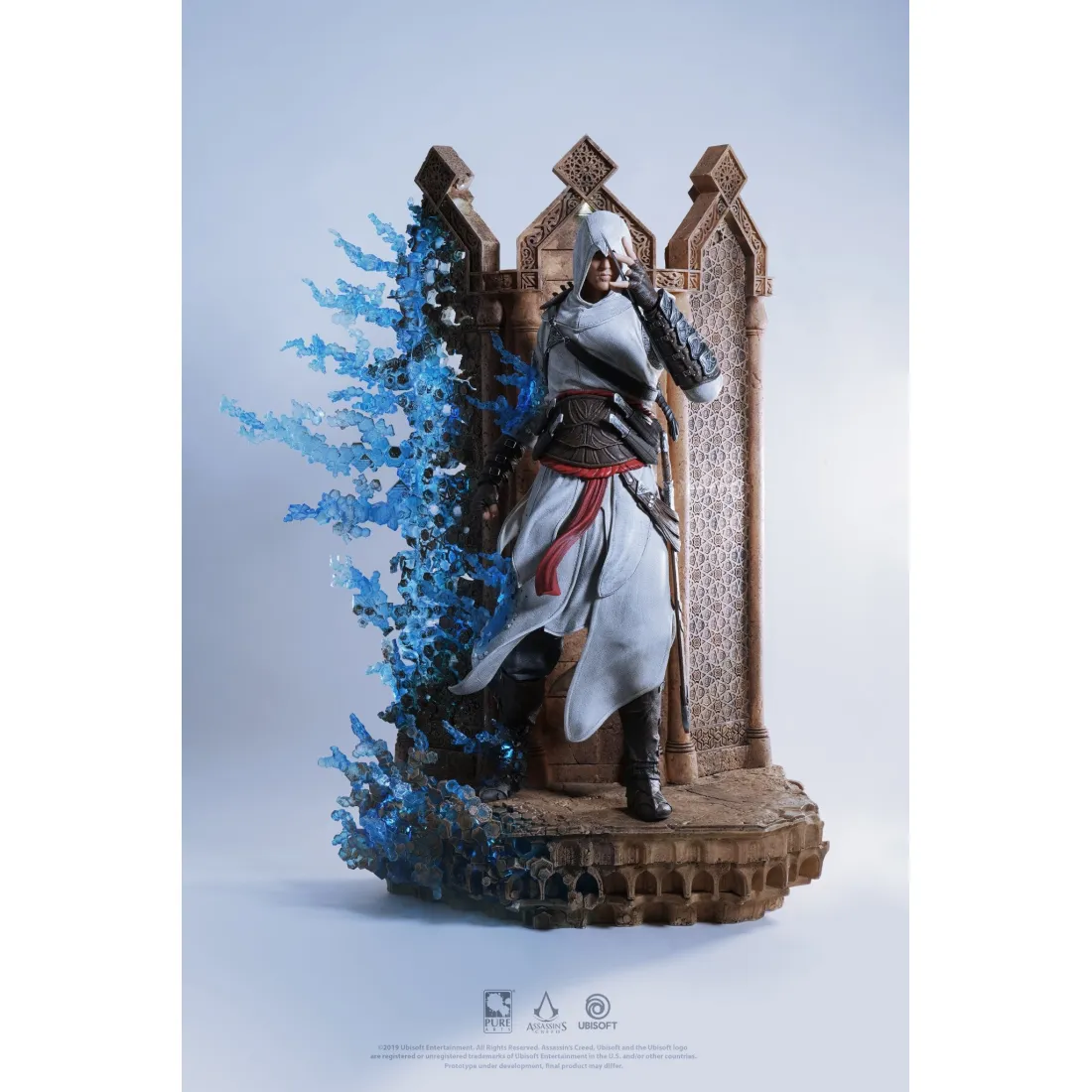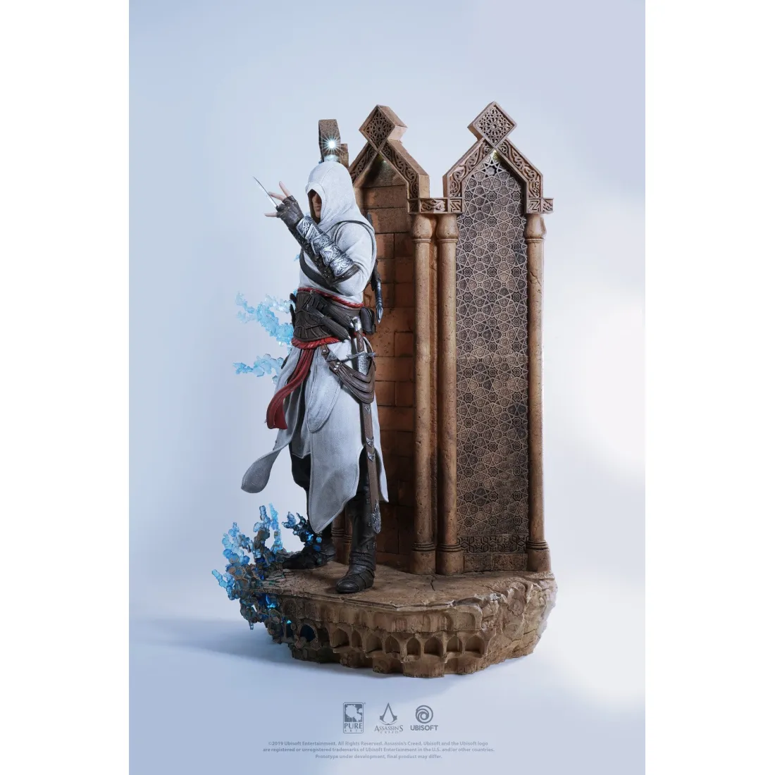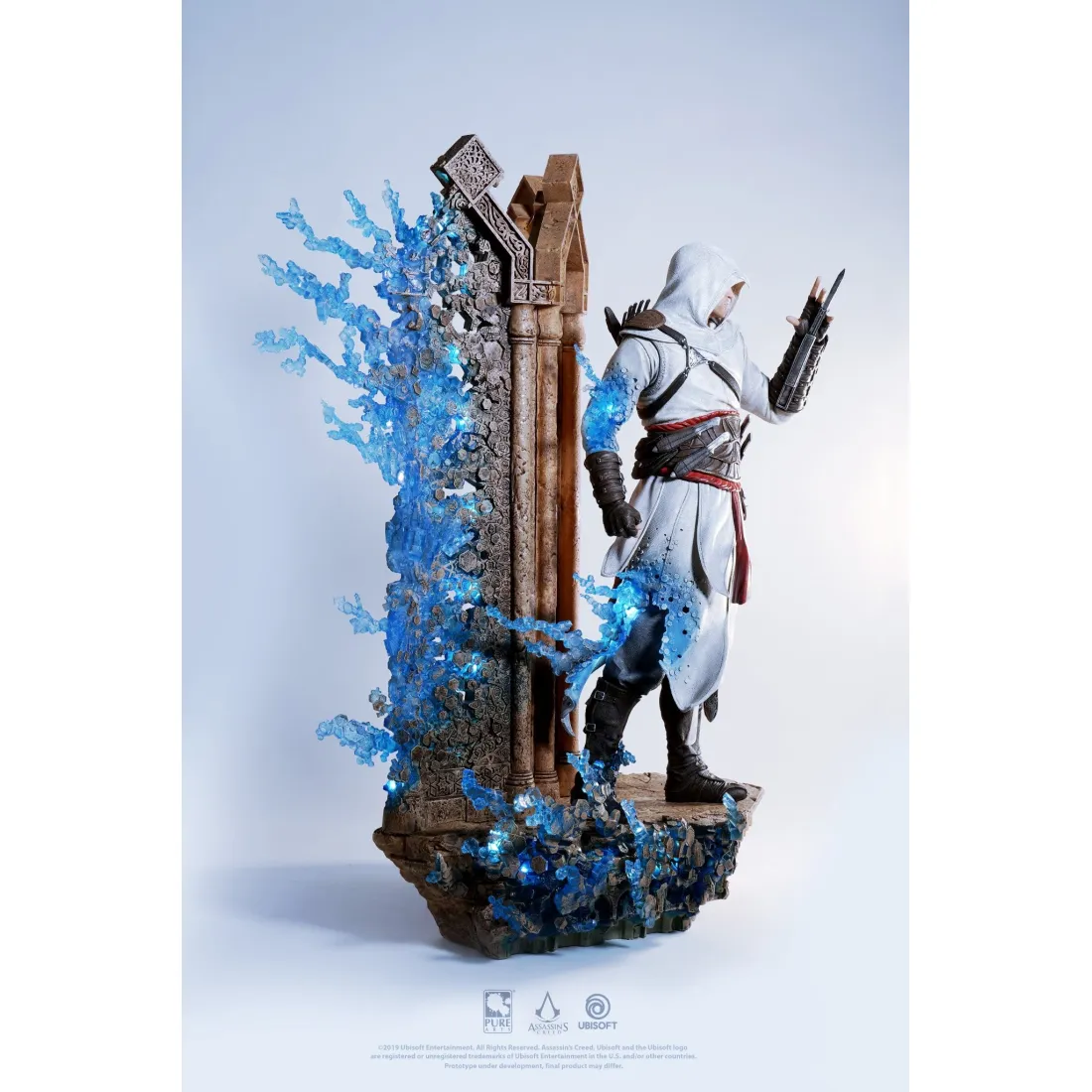 PureArts dévoile Altaïr Ibn-La’Ahad de l’univers d’Assassin’s Creed brandissant son emblématique Lame Secrète avec ferveur.Pour la première fois, l’Animus a été représenté sur une statue à echelle ¼ (62cm) à l’aide de techniques de sculpture et de peinture à la main hautement maîtrisée par notre équipe d’artistes. Les détails de cette statue à l’échelle ¼ (62cm) sont impressionants de réalisme et grâce au système de LED qui s’illumine, judicieusement installé à l’intérieur de l’Animus, vous aurez l’impression d’être le témoin de cette matérialisation.