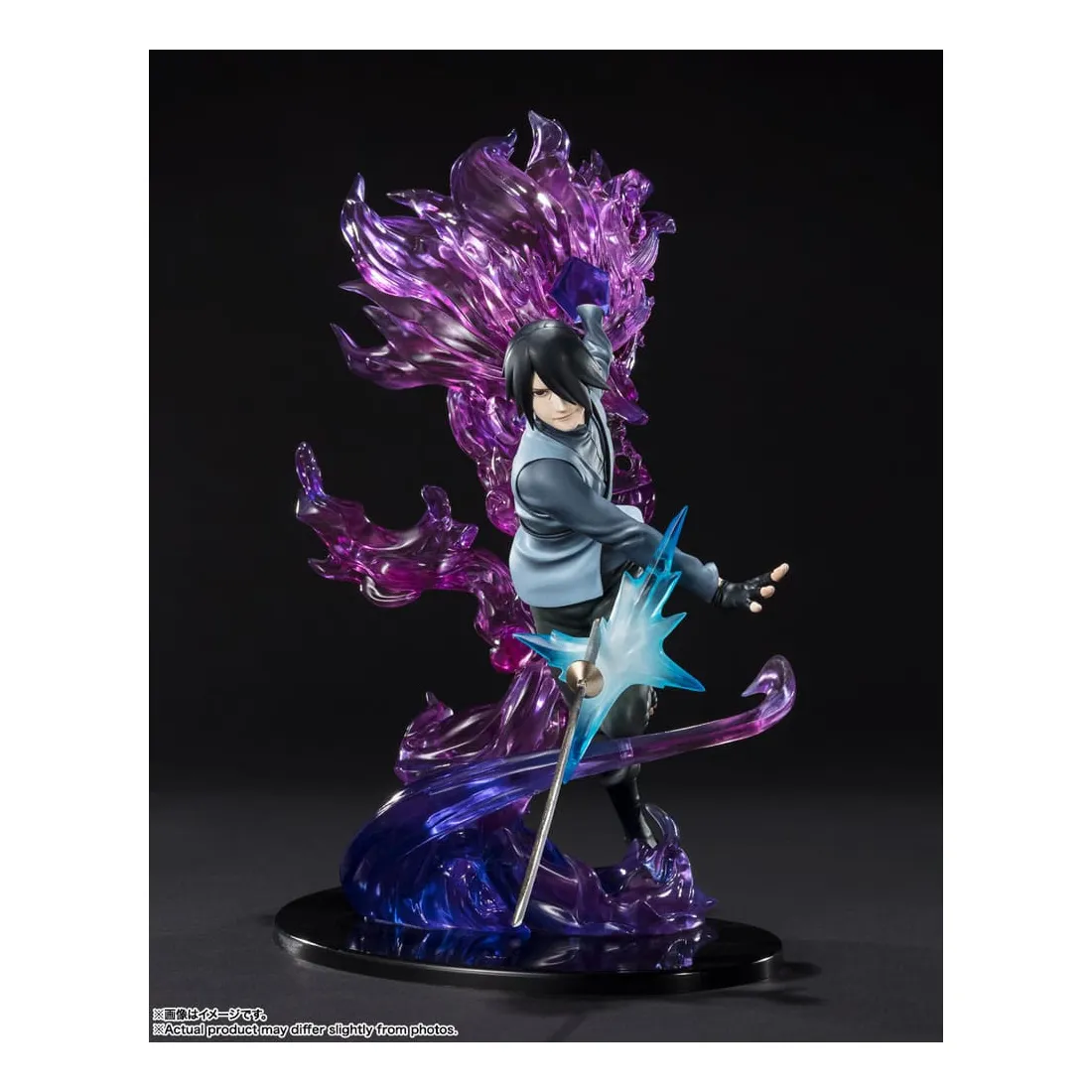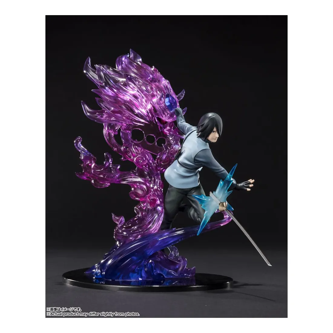 Retrouvez Sasuke dans sa version Boruto avec cette Figuarts Zero de 24 cm. La figurine en PVC est tirée de l’épisode 65 de l’animé, « Père et fils », pendant lequel Sasuke se bat contre Momoshiki, et inclut un effet d’attaque transparent inspiré de son Susano.