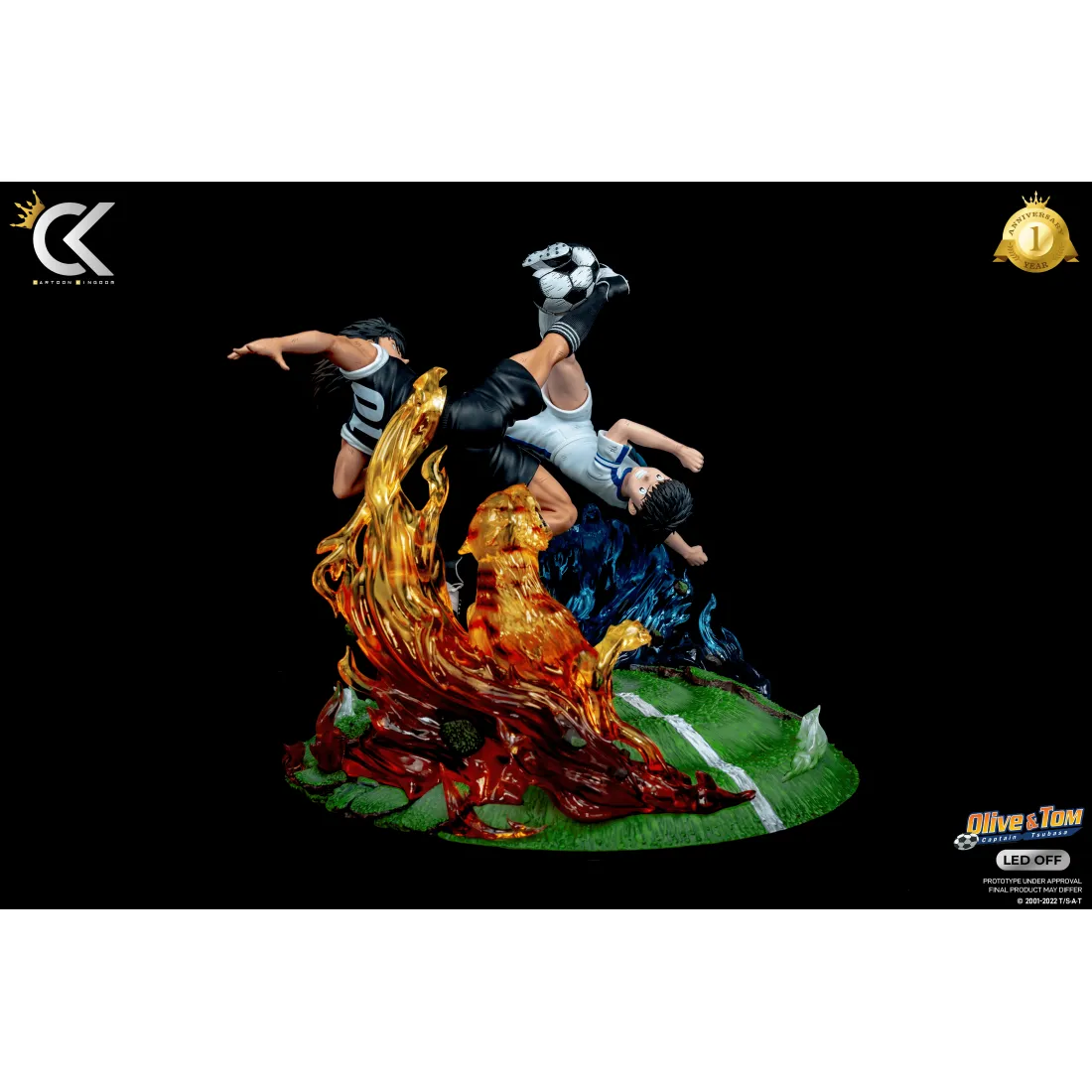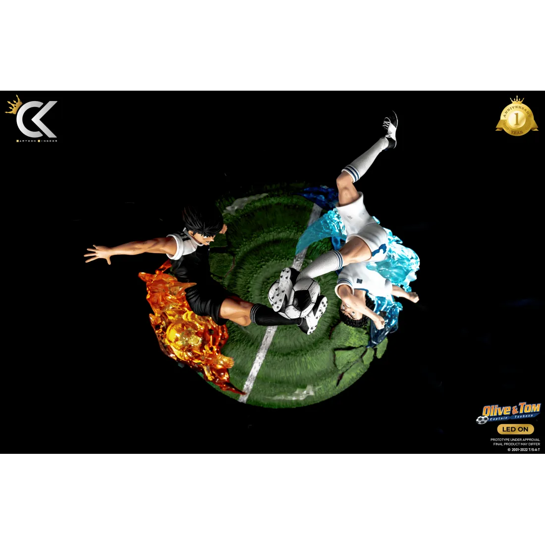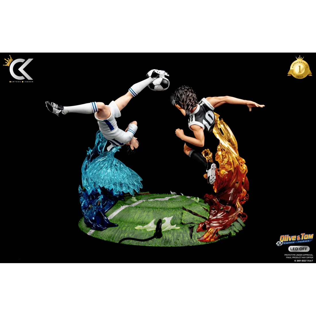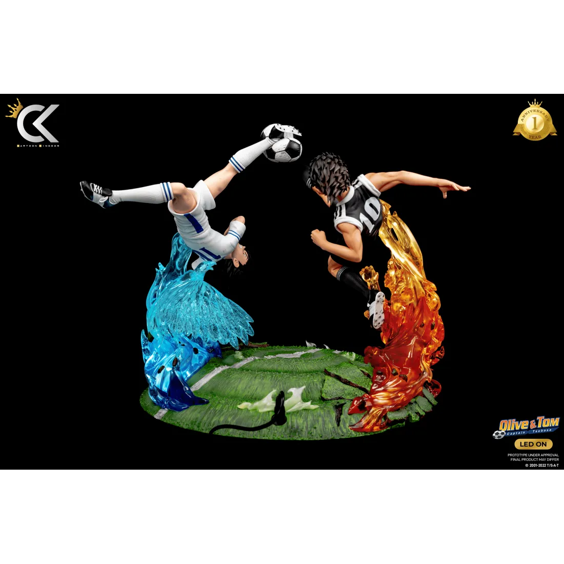 Ce diorama représente Olivier ATTON et Mark LANDERS, deux rivaux qui souhaitent atteindre les sommets dans le milieu du football. Une scène marquante de la finale pour gagner la coupe du Japon ou les deux personnages se disputent la possession du ballon.