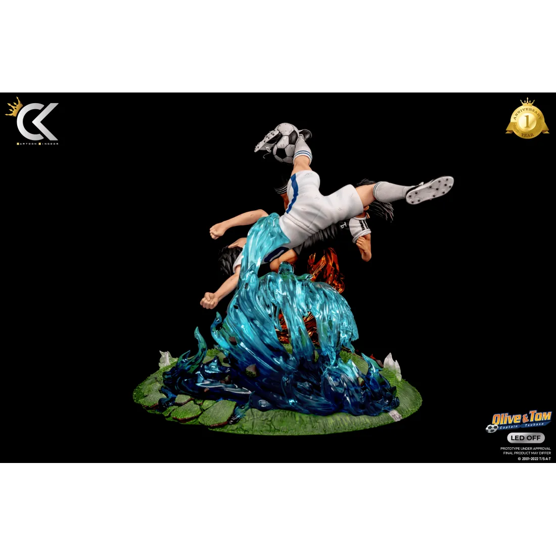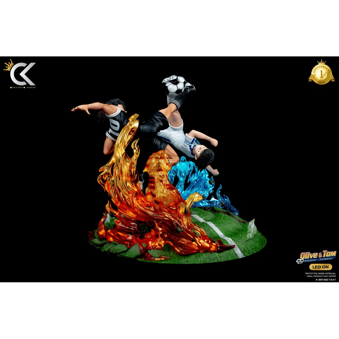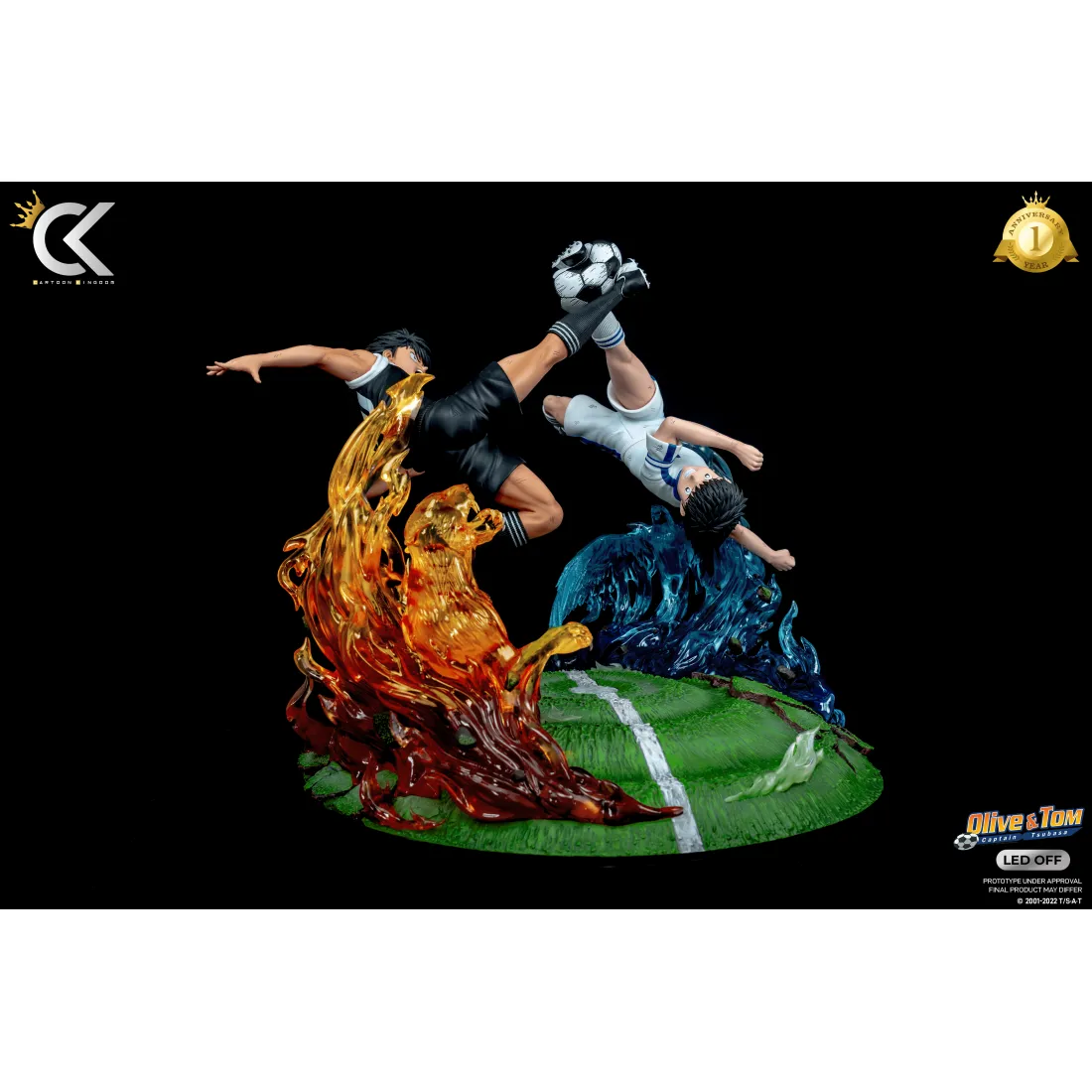 Ce diorama représente Olivier ATTON et Mark LANDERS, deux rivaux qui souhaitent atteindre les sommets dans le milieu du football. Une scène marquante de la finale pour gagner la coupe du Japon ou les deux personnages se disputent la possession du ballon.