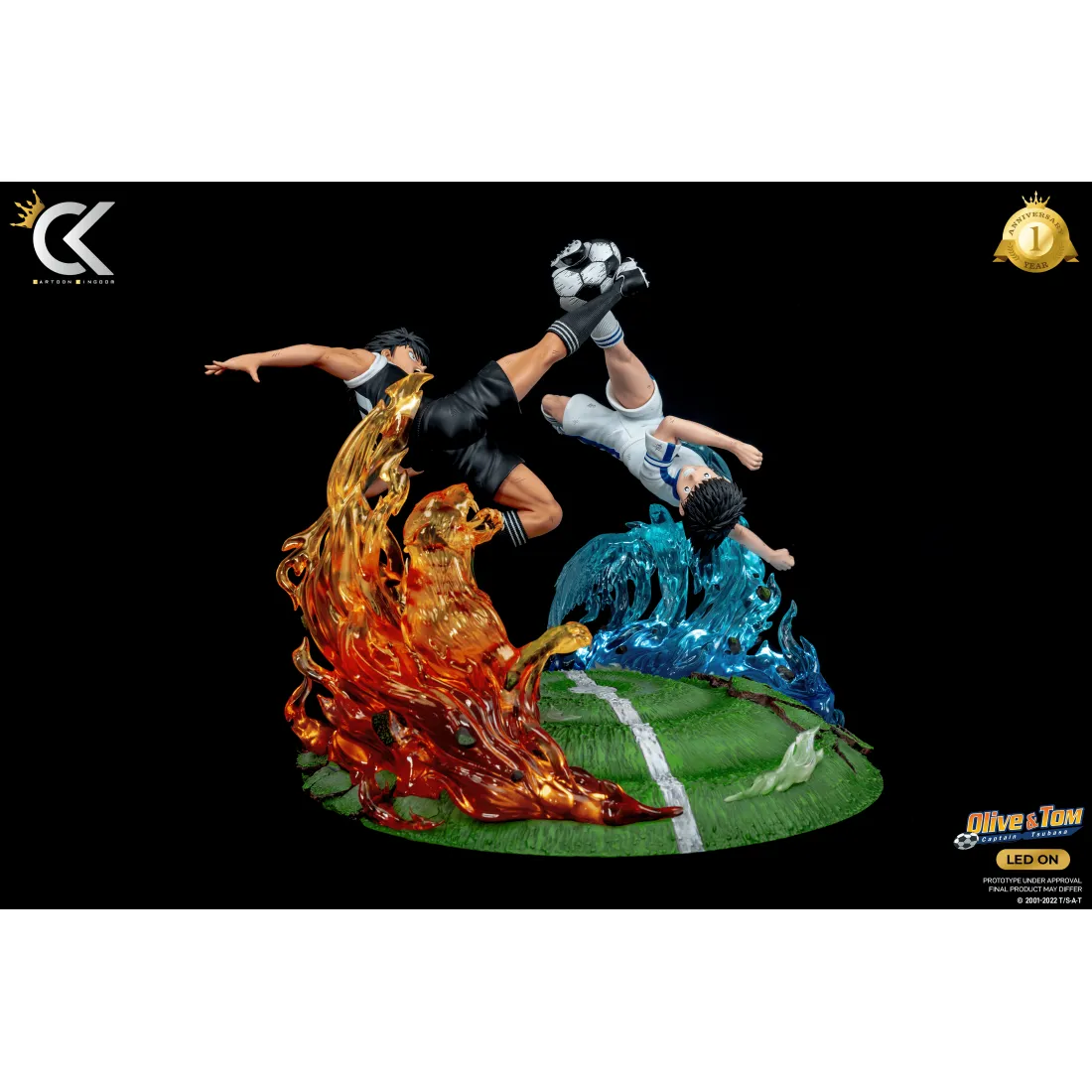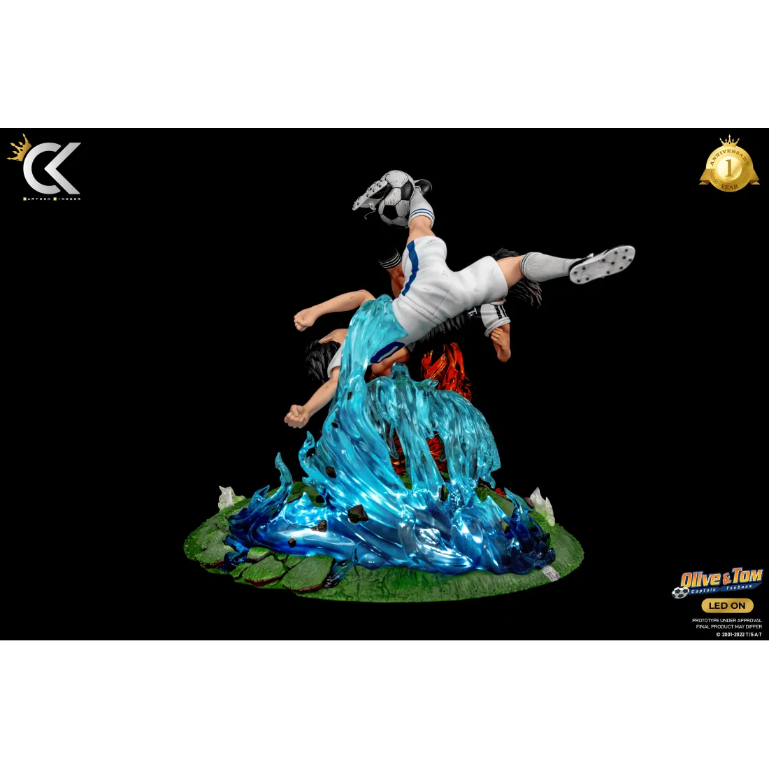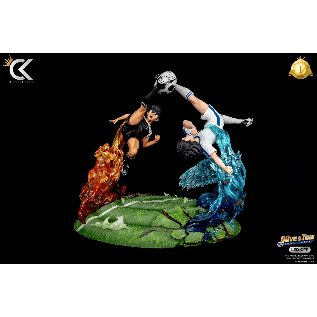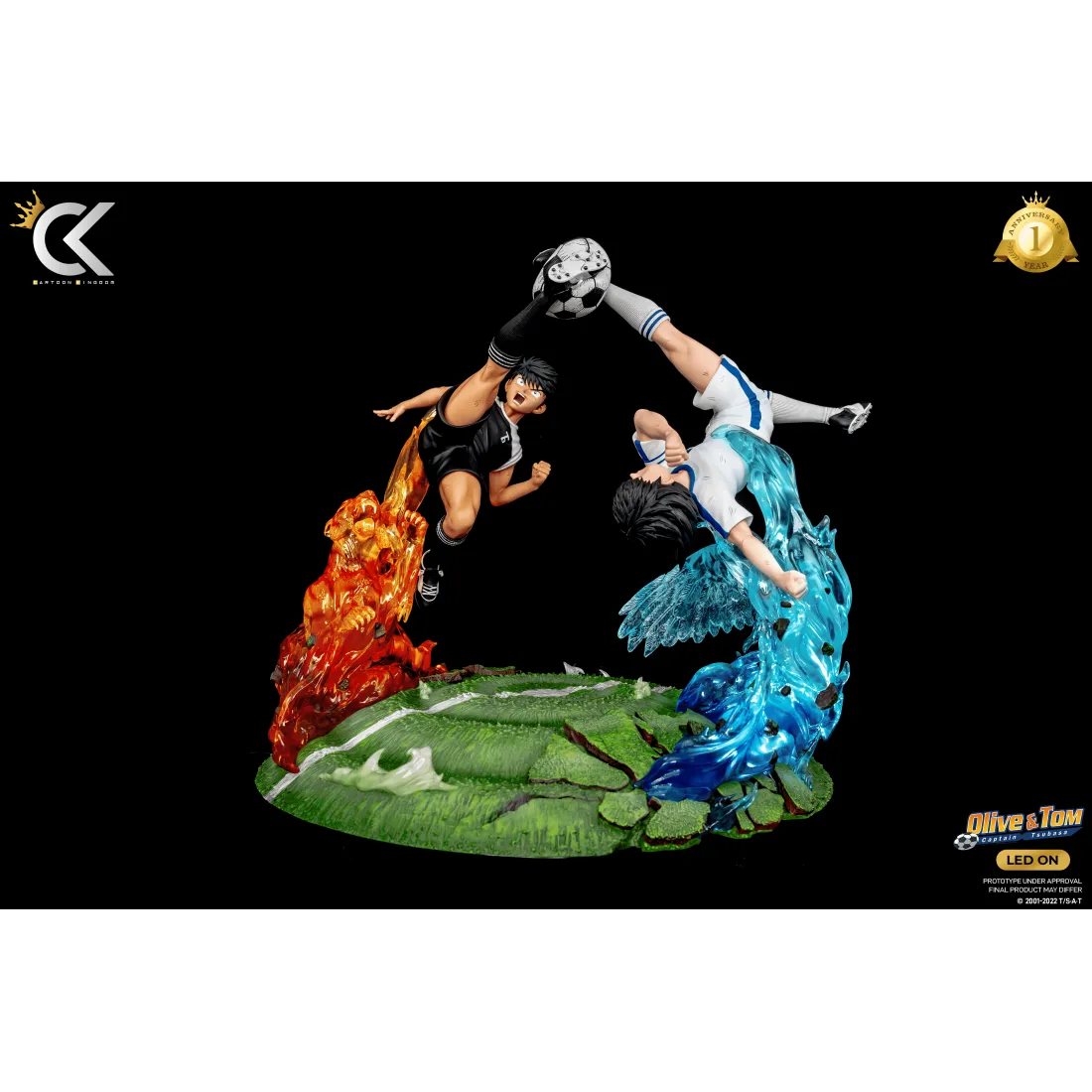 Ce diorama représente Olivier ATTON et Mark LANDERS, deux rivaux qui souhaitent atteindre les sommets dans le milieu du football. Une scène marquante de la finale pour gagner la coupe du Japon ou les deux personnages se disputent la possession du ballon.