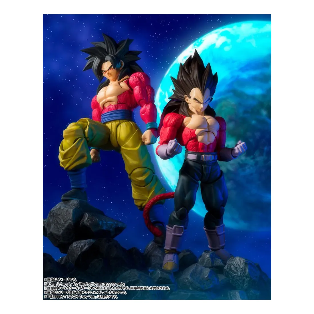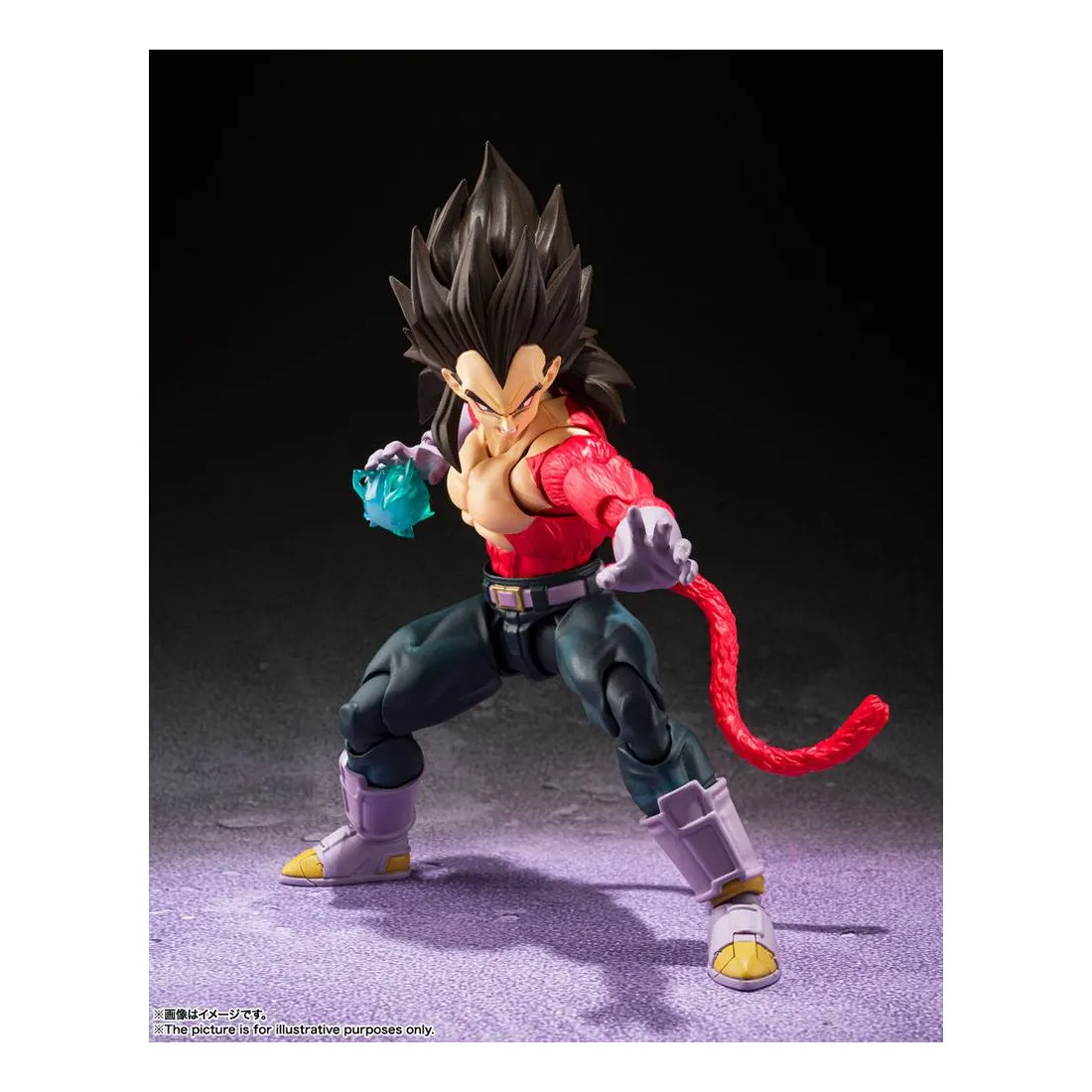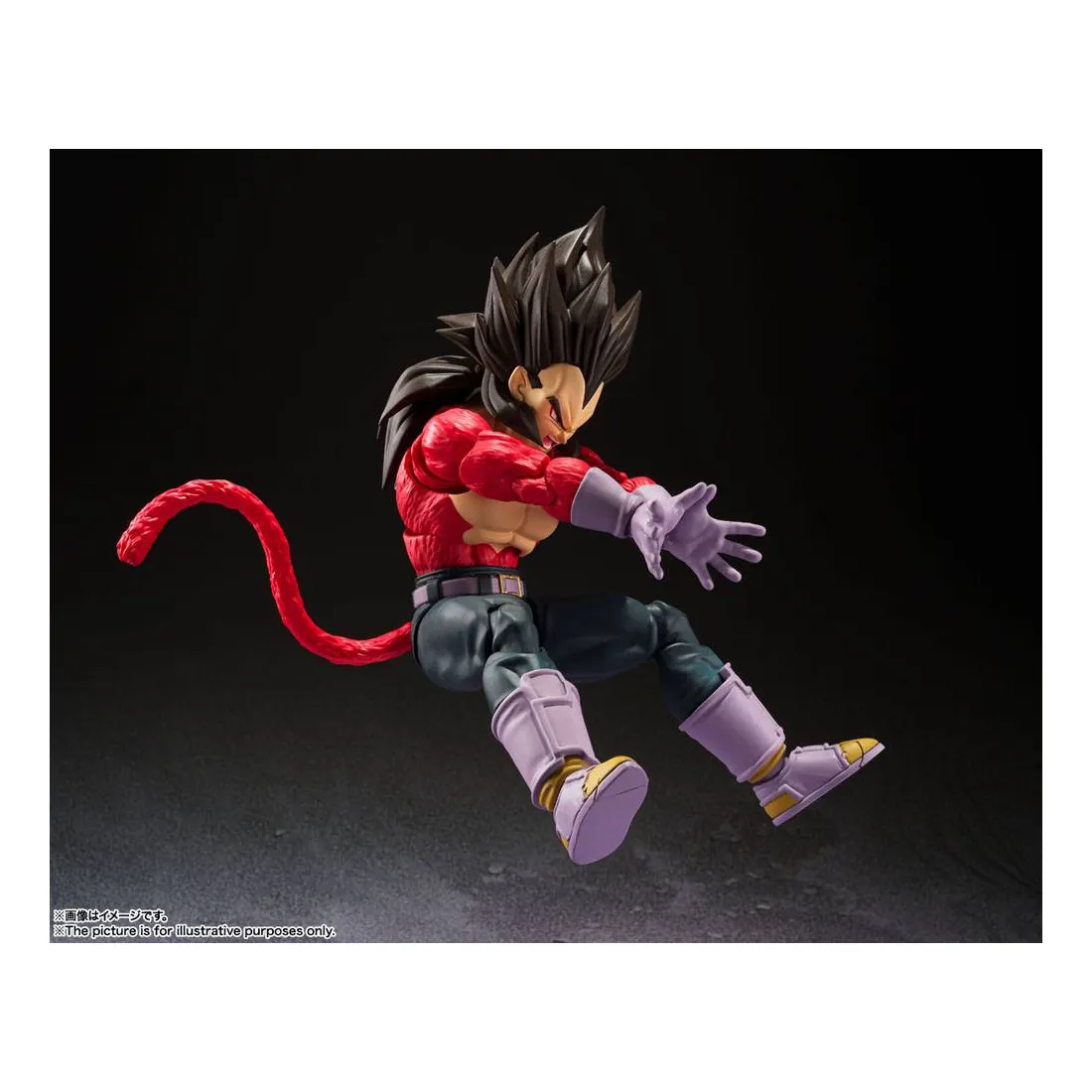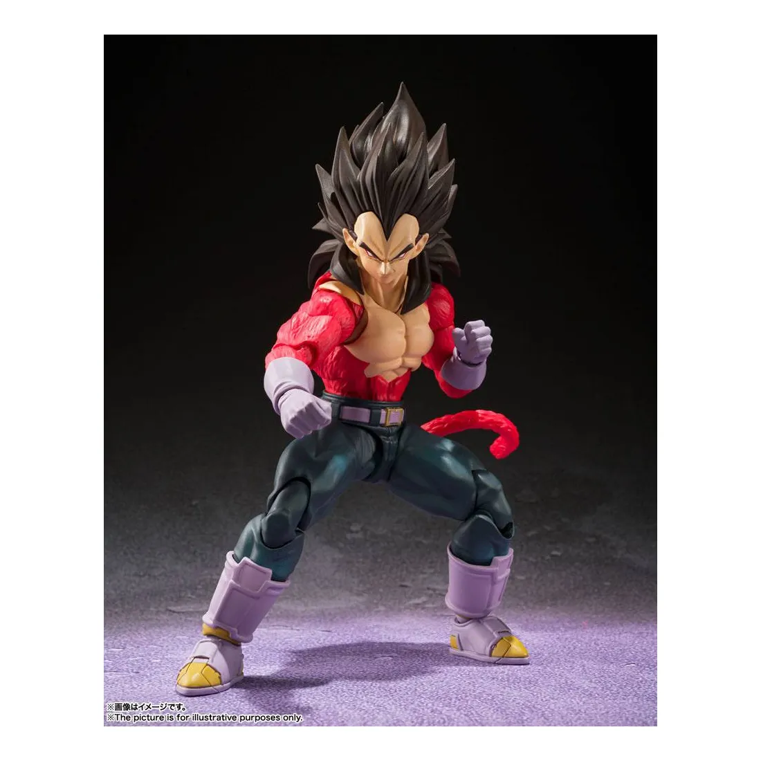 Retrouvez le Prince des Saiyan Vegeta dans sa version Super Saiyan 4 de Dragon Ball GT avec cette figurine articulée par le fabricant japonais Tamashii Nations. Inclut de nombreux points d’articulations et des pièces interchangeables (mais et visages), ainsi que l’effet de l’attaque Final Shine.