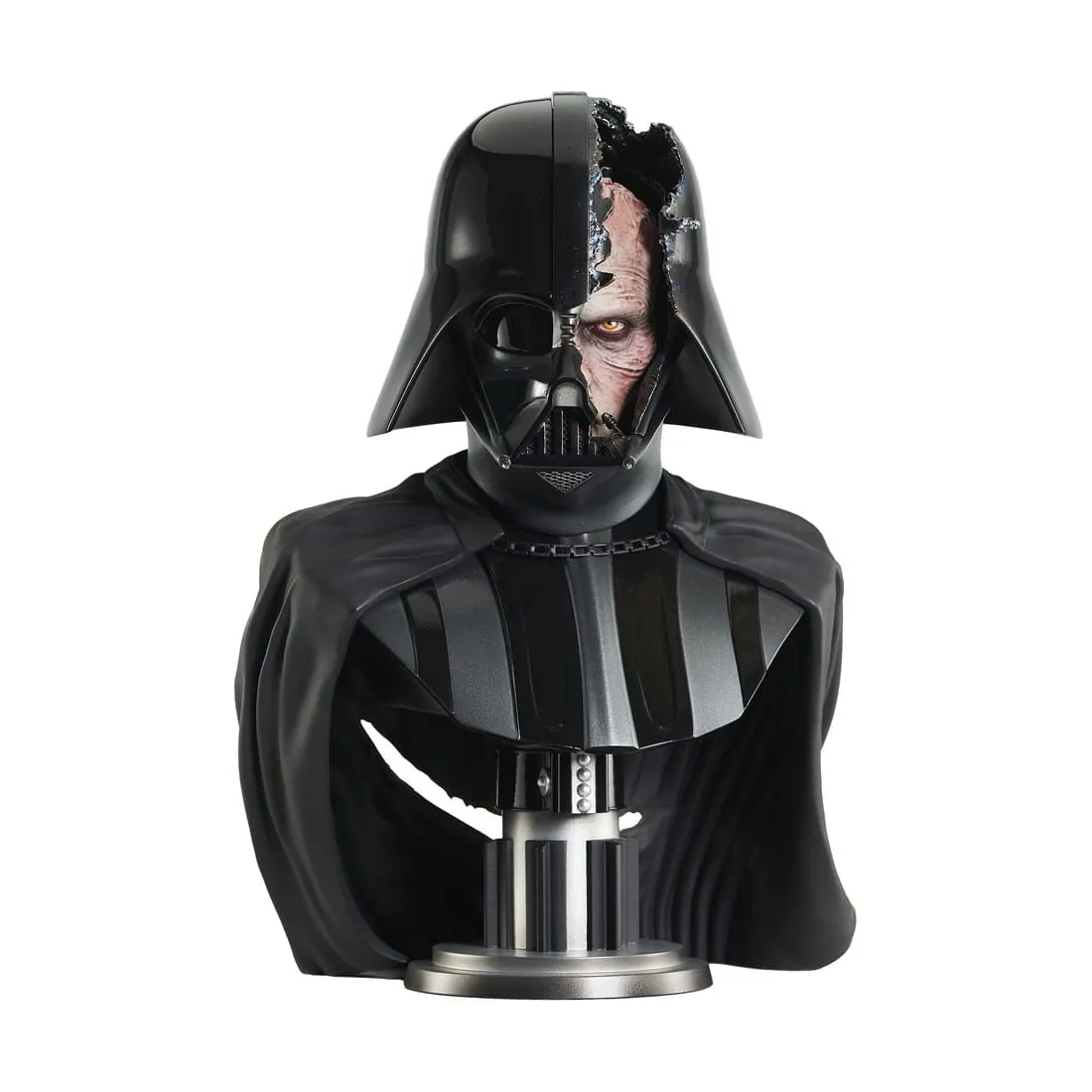 « Tu n’es pas prêt, mon jeune padawan ! » Dark Vador a été vaincu par Obi-Wan Kenobi avec ce buste Legends en 3D le présentant avec son casque fendu et le visage brûlé en dessous. Avec une cape déchirée et une base inspirée du sabre laser, ce buste en résine d’environ 28 cm est limité à seulement 1 000 pièces – il est livré avec un certificat d’authenticité numéroté dans une boîte en couleur.