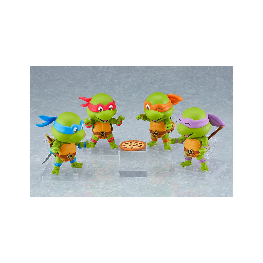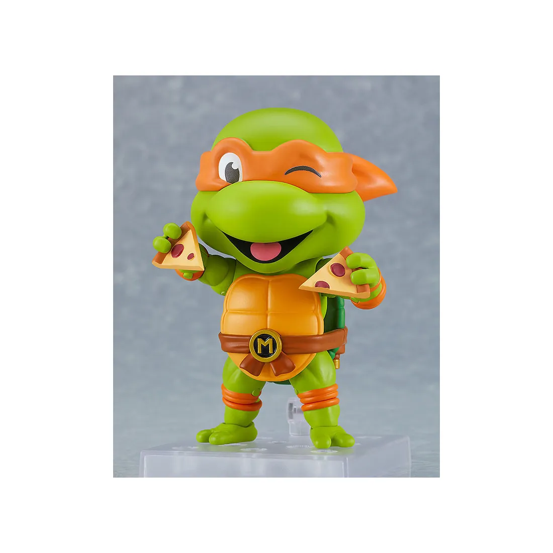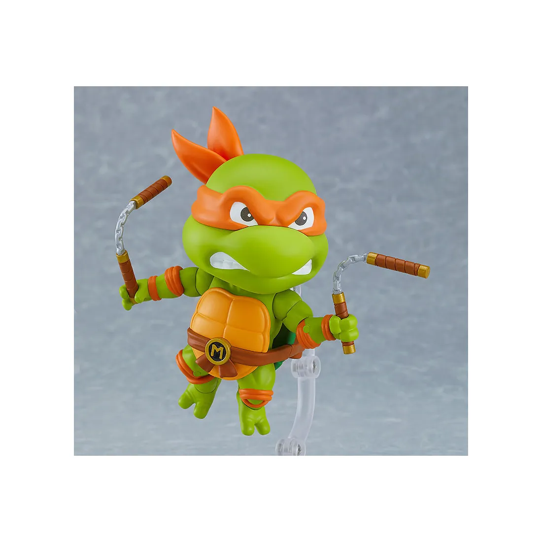 Voici la Nendoroid de Michelangelo de la franchise très populaire des Teenage Mutant Ninja Turtles (Les tortues ninja) ! La figurine articulée inclut des parties interchangeables du visage et de la bouche, ce qui vous permettra de varier les expressions – normales, souriantes et combatives. De son bandana à ses genouillères, Michelangelo a été reproduit dans des les moindres détails sous forme de Nendoroid. Les pièces additionnelles incluent ses nunchakus, deux tranches de pizza et des mains supplémentaires, pour recréer des scènes tirées du dessin animé !
