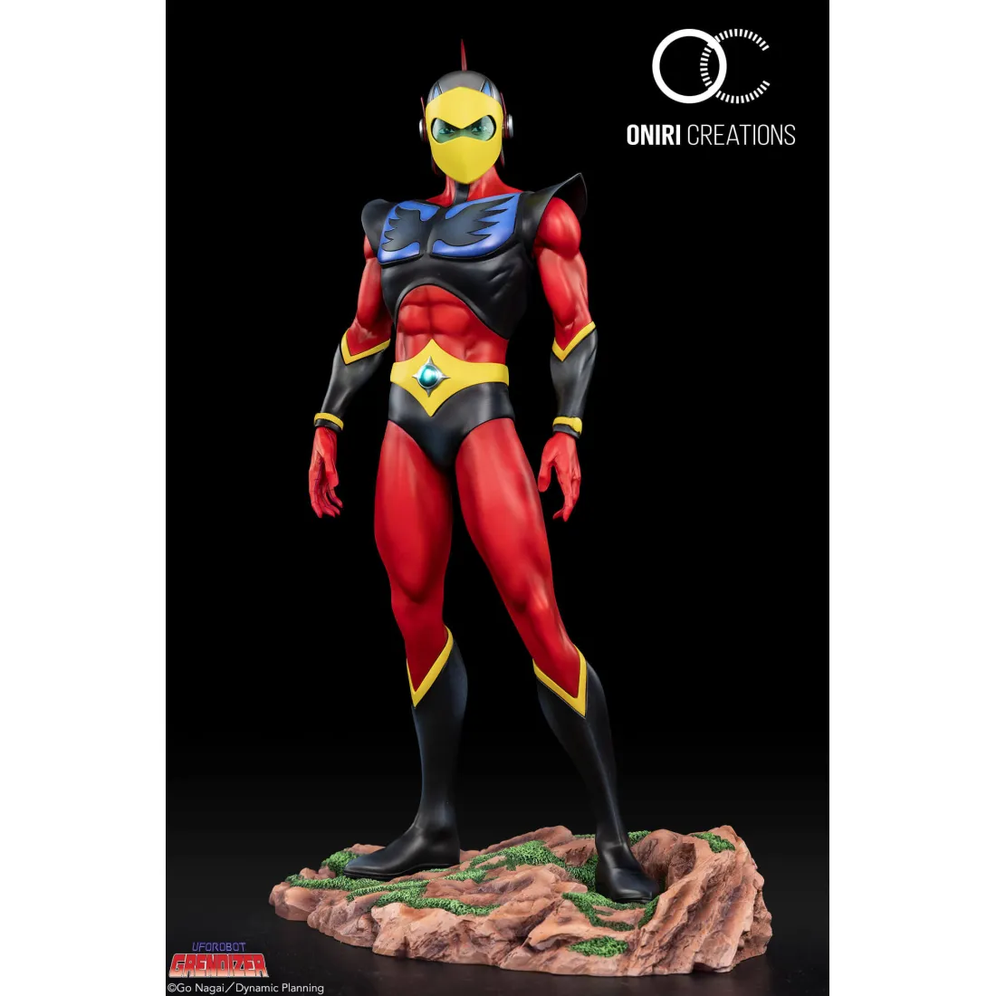 Représenté dans sa combinaison de vol et équipé de son casque intégral, Actarus se voit armé de son pistolet-laser mais différentes parties interchangeables (voir les photos ci-contre) vous permettront de l’exposer de différentes façons.Parfait complément de notre Goldorak et également limitée à seulement 555 exemplaires dans le monde, la statue réalisée à l’échelle 1/6 est fournie avec son certificat d’authenticité.