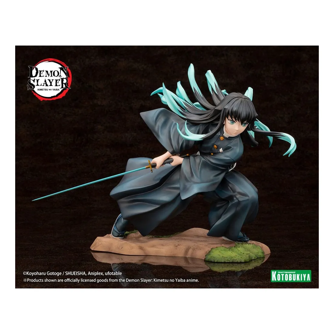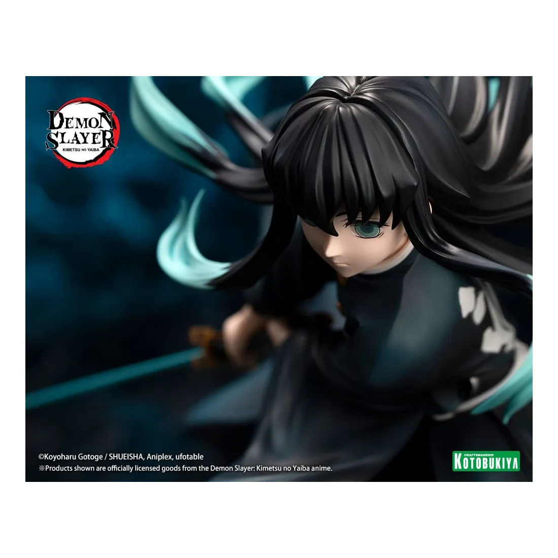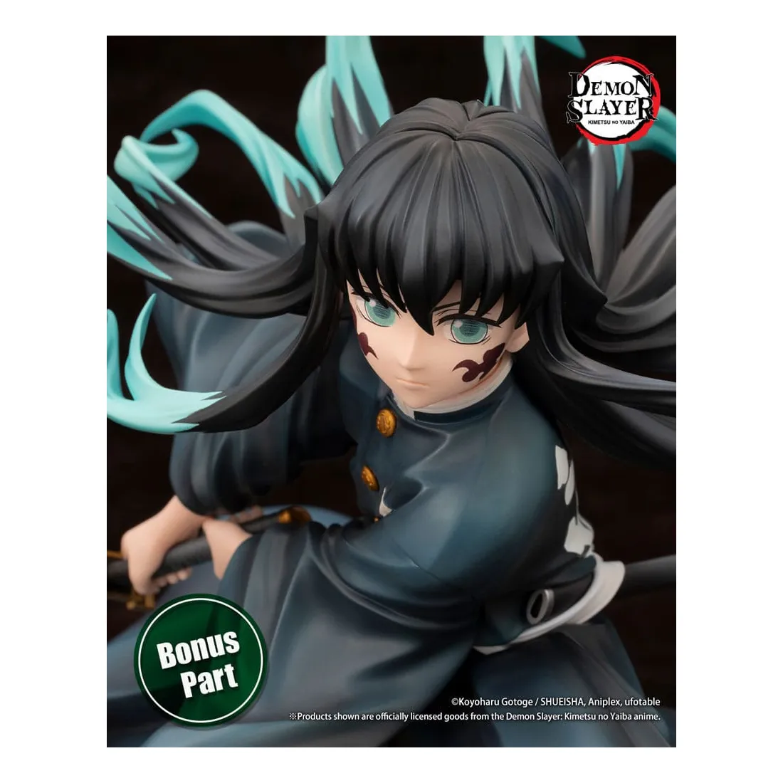Le Pilier de la brume, Muichiro Tokito, prend vie dans une pose qui capture le moment où il balance puissamment son épée. Ses cheveux et son uniforme ont été sculptés pour être dynamiques et fluides avec ses mouvements. Son épée Nichirin a également été recréée dans les moindres détails.