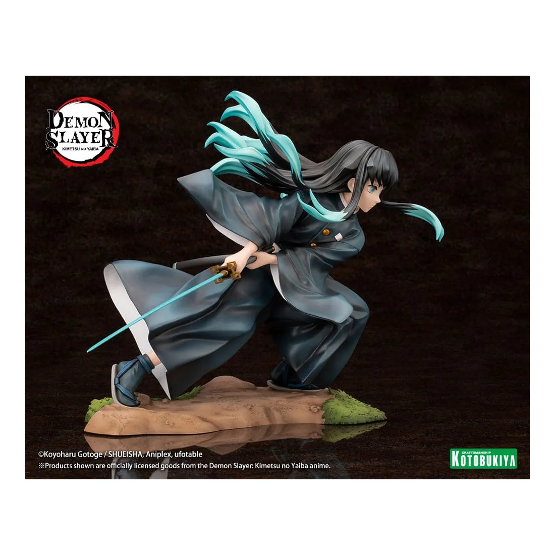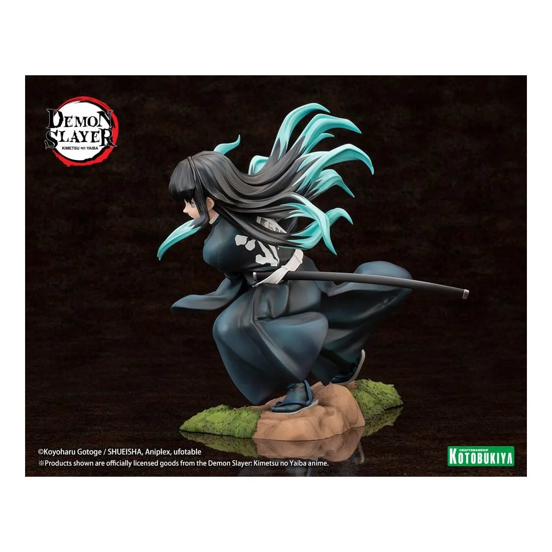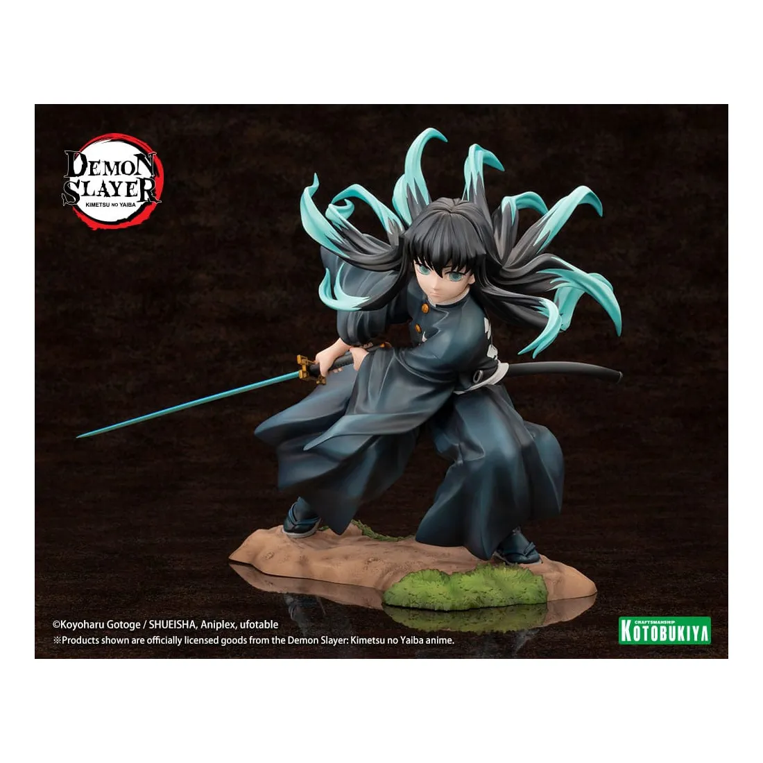 Le Pilier de la brume, Muichiro Tokito, prend vie dans une pose qui capture le moment où il balance puissamment son épée. Ses cheveux et son uniforme ont été sculptés pour être dynamiques et fluides avec ses mouvements. Son épée Nichirin a également été recréée dans les moindres détails.