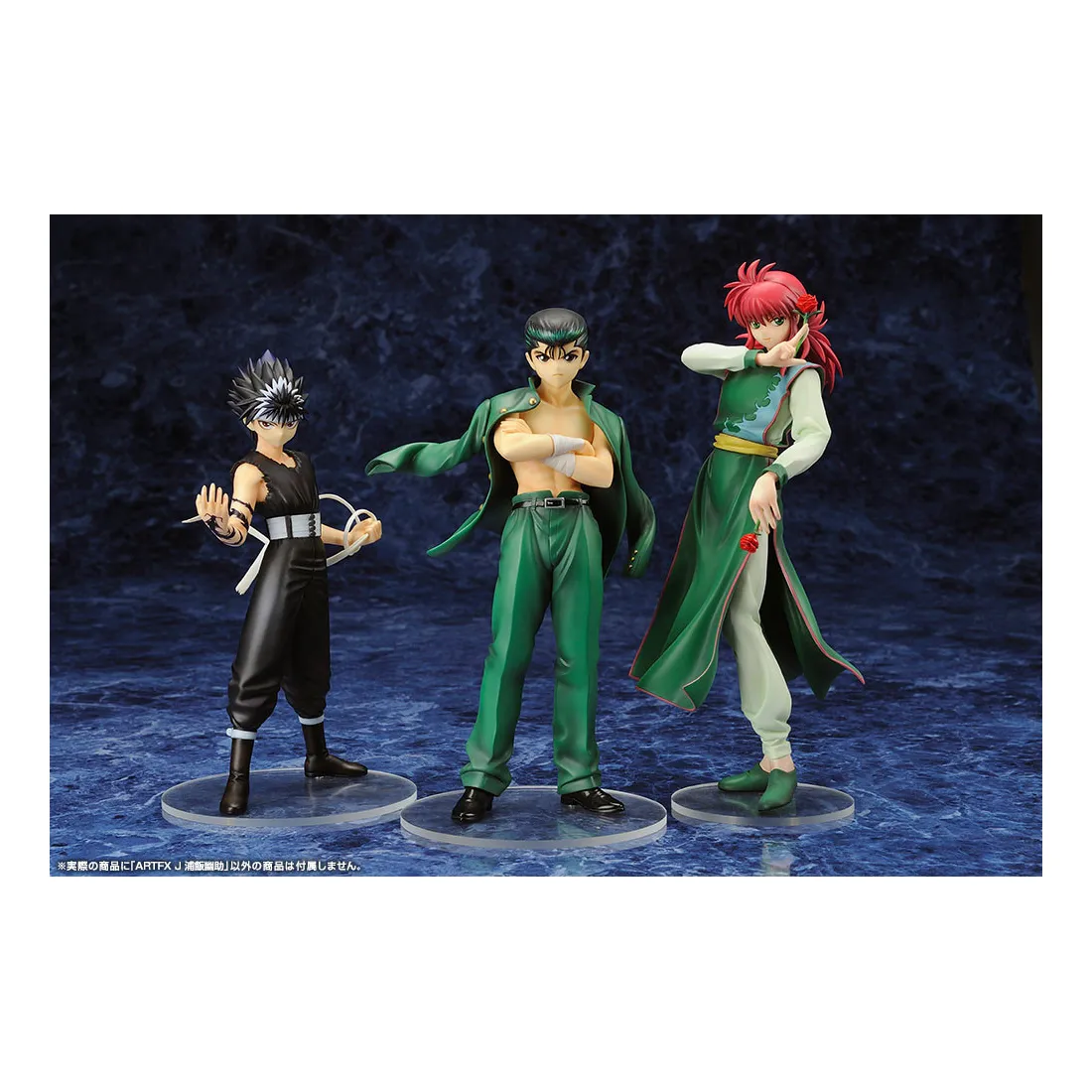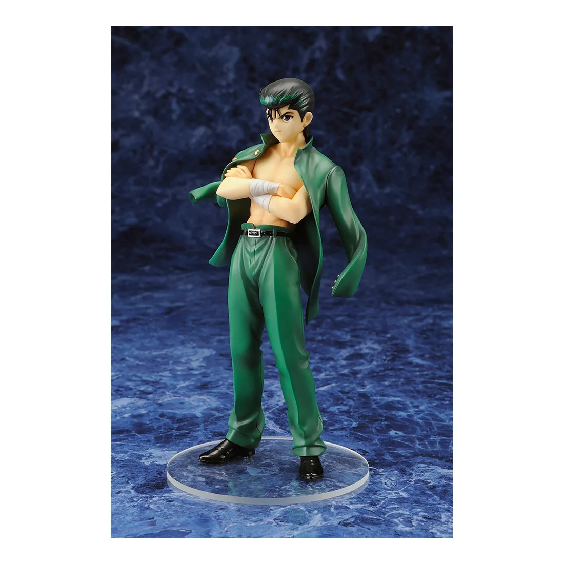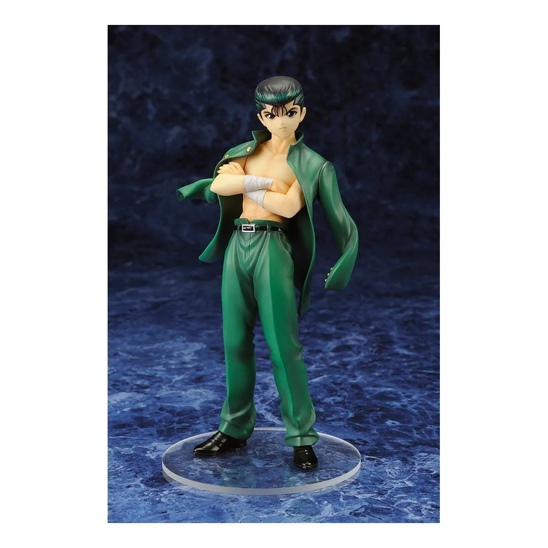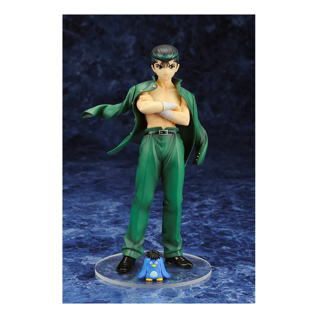 Kotobukiya nous propose une collection de 4 personnages du manga dans la gamme ARTFXJ. Ici, nous avons une figurine de Yusuke Urameshi , le héros du manga, à l’échelle 1/8. Il est possible de présenter la figurine avec ou sans veste et/ou avec l’oiseau Puu.