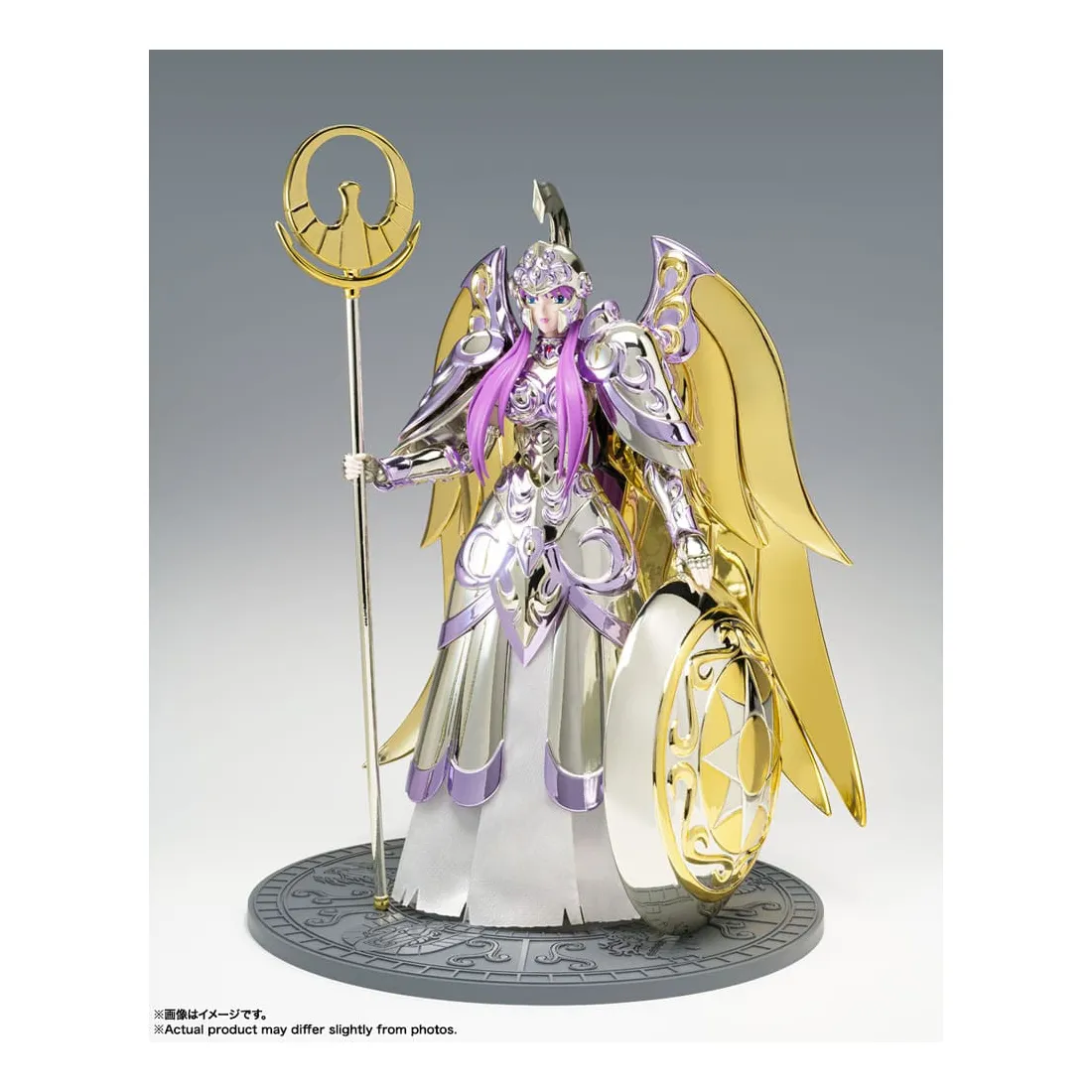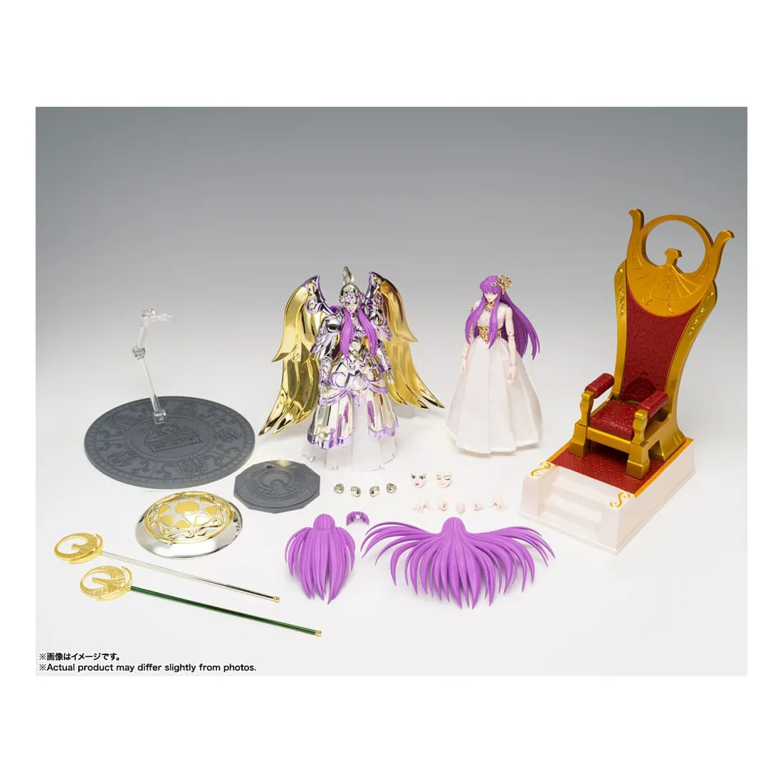 Un grand trône est inclus, et la figurine peut s’asseoir sur le trône lorsqu’elle porte ses vêtements normaux. Par ailleurs, la base spéciale du 20e anniversaire comprend des pièces de rechange pour l’écusson d’Athéna et le logo du 20e anniversaire.
