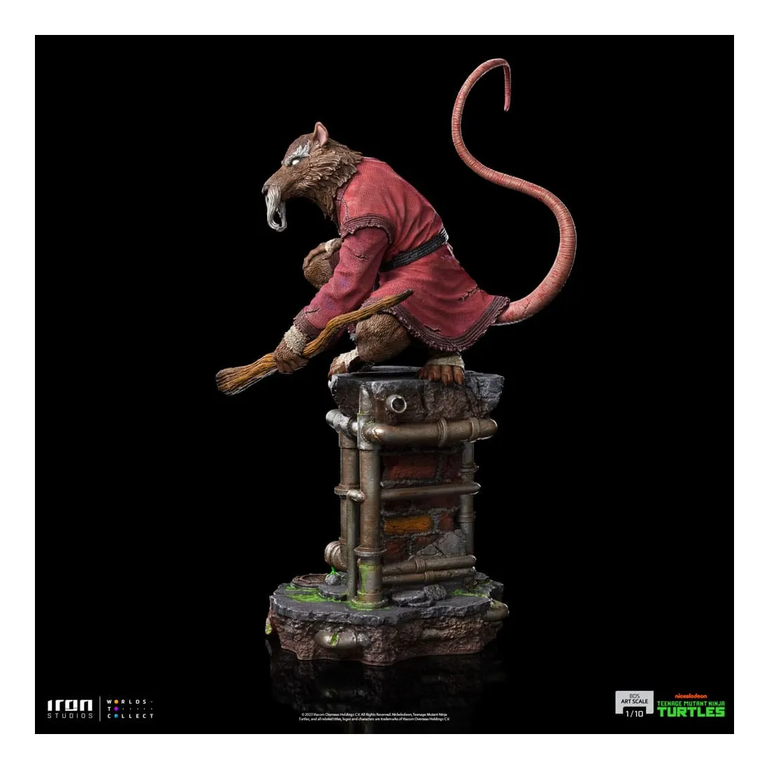 Complètement inconscients de ce qui se passe sous leurs pieds dans les tunnels des égouts, les habitants de New York n’ont aucune idée qu’un grand rat ninja mutant anthropomorphe est la figure paternelle et le maître dans l’art du Ninjutsu pour quatre frères Tortues. Vêtu d’un kimono miteux rouge, le vieux rat à la fourrure brune et aux longues moustaches grises se tient en équilibre accroupi sur un vieux réseau de tuyaux et de murs de briques, tenant dans sa main gauche son inséparable bâton de bois devant son corps, prêt à combattre n’importe quel méchant qui souhaite faire du mal à ses fils. Iron Studios vous présente sa statue Master Splinter BDS – TMNT – Art Scale 1/10, le sensei des emblématiques Tortues Ninja.