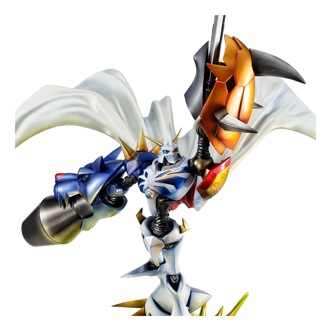 L’épée grise est pointée vers le ciel, ce qui permet à la figurine d’atteindre une hauteur impressionnante de 60 cm. Le canon Garuru, les yeux emblématiques d’Omnimon et la cape flottant au vent ont tous été sculptés et peints dans les moindres détails. Cette figurine d’Omegamon est un must pour tous les fans du manga Digimon !