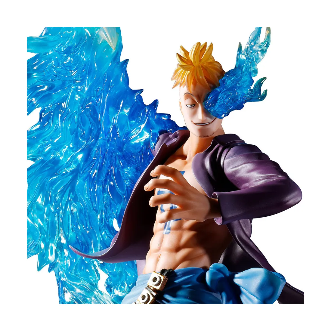 Marco est un utilisateur hautement qualifié du Busoshoku Haki qui a mangé le fruit du démon mythique de type Zoan. Il a été représenté avec les flammes bleues du phénix qui l’entourent au niveau de son bras droit et la coloration unique de ses jambes capturent Marco aussi fidèlement que possible.