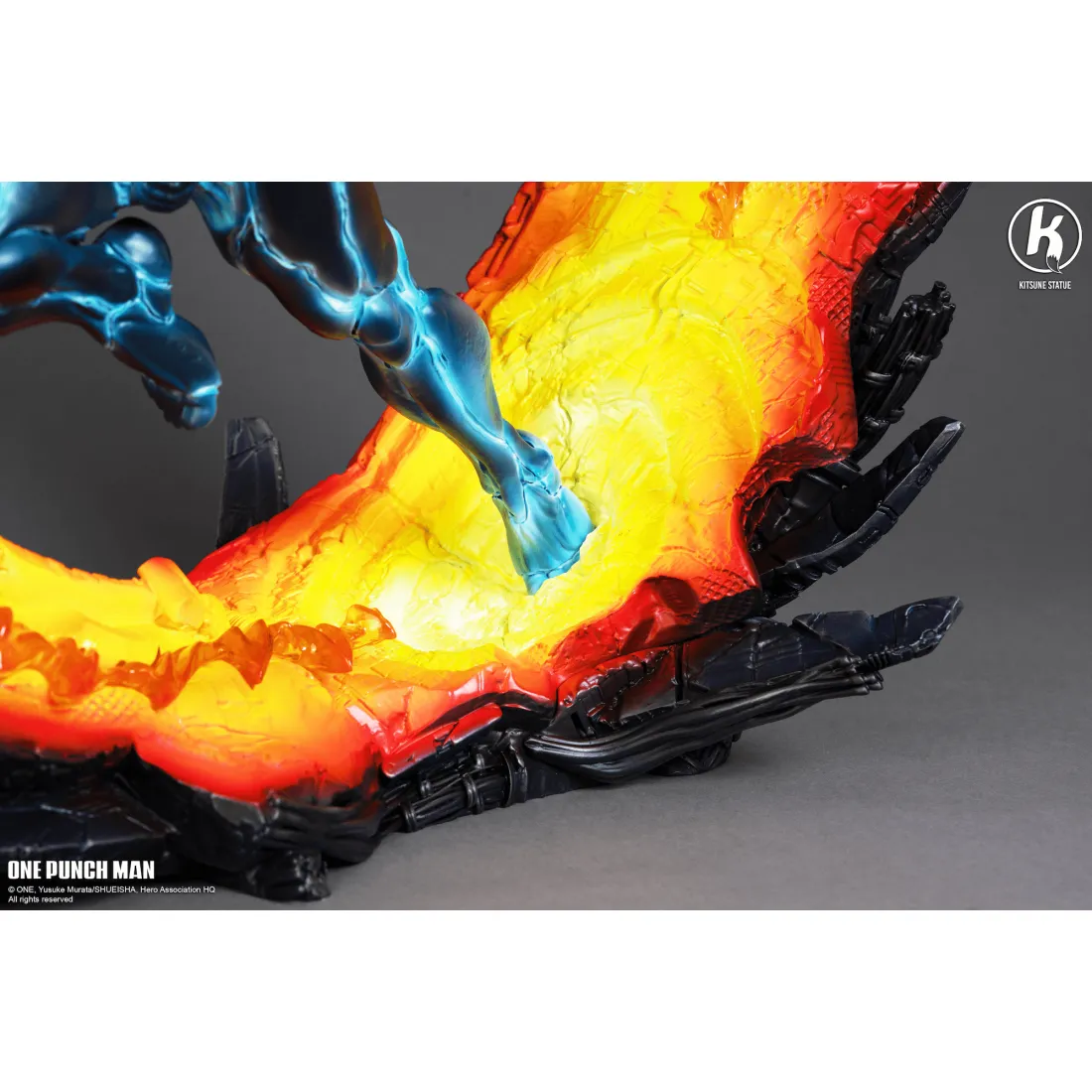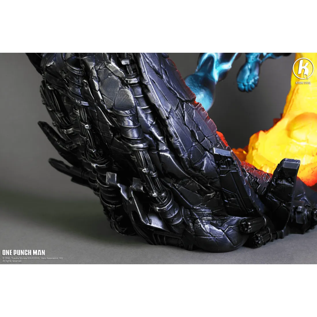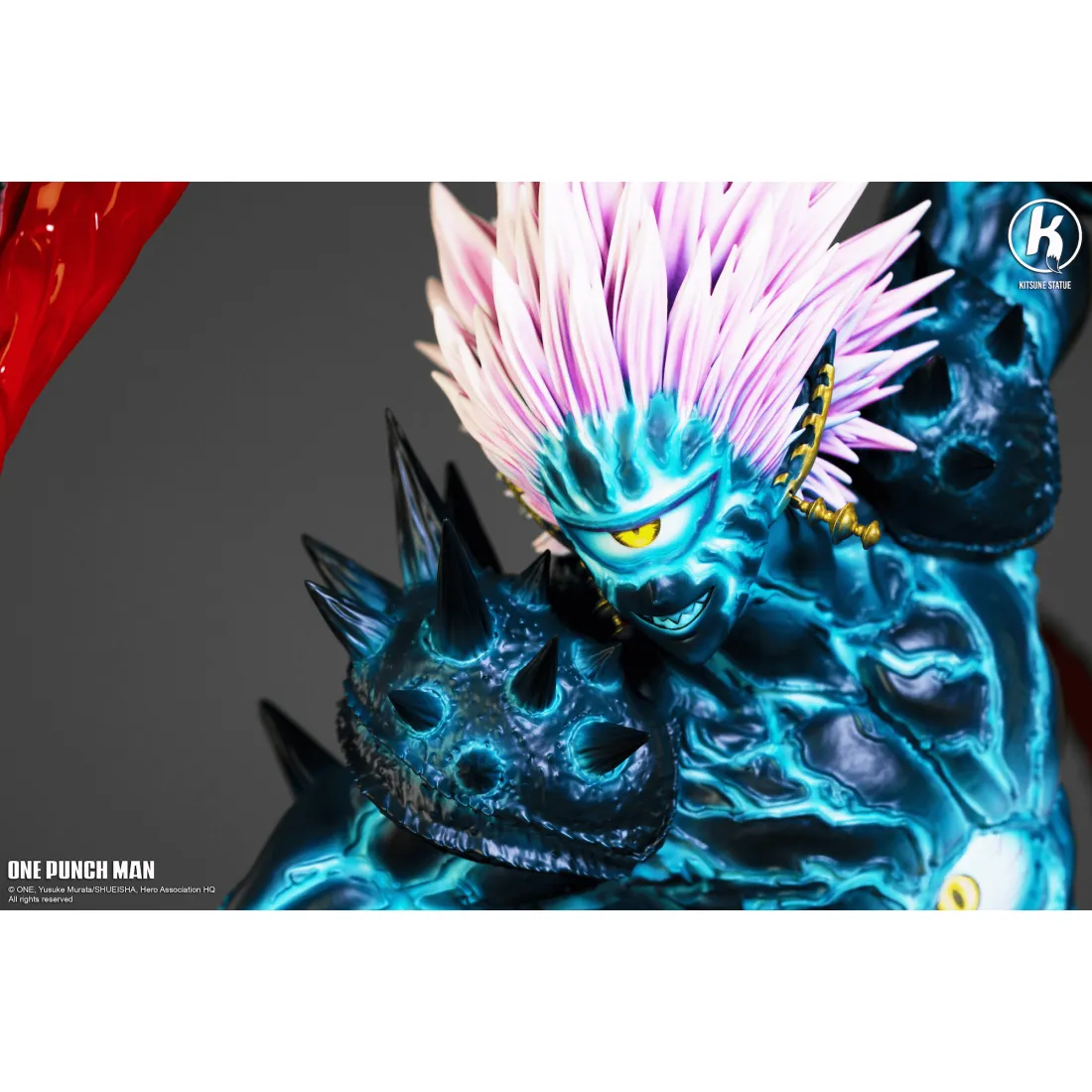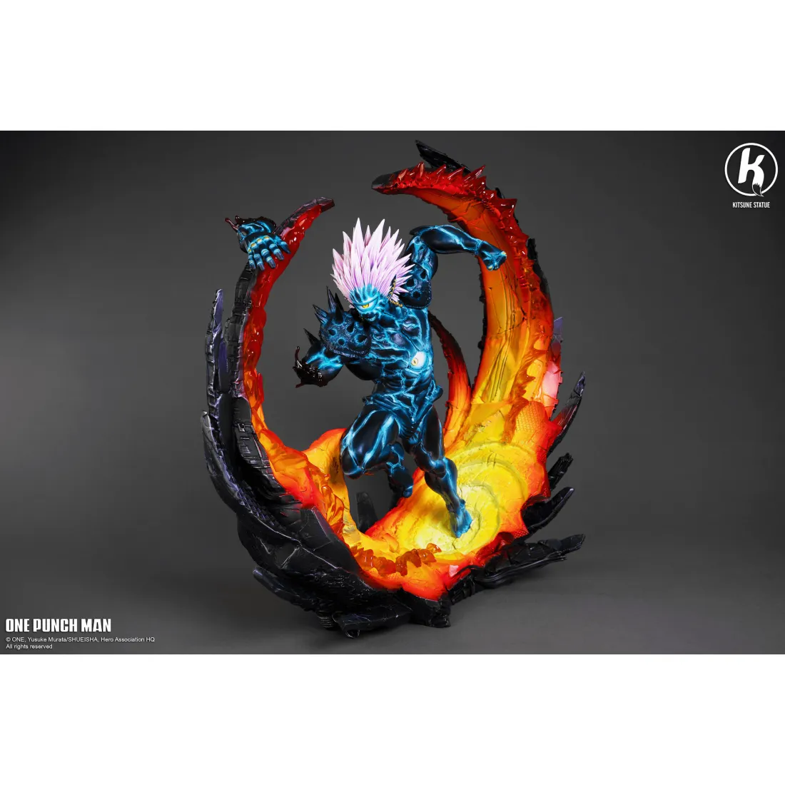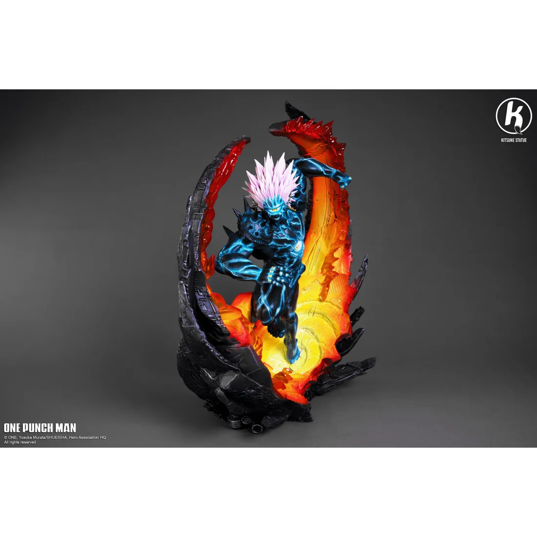 Au début de ce combat, Boros, tout excité d’avoir trouvé un adversaire digne de ce nom, se transforme et dévoile sa puissance ! Chacun de ses pas fait fondre la carlingue du vaisseau ! C’est ce moment de déchaînement que Kitsune a voulu représenter sur cette statue.