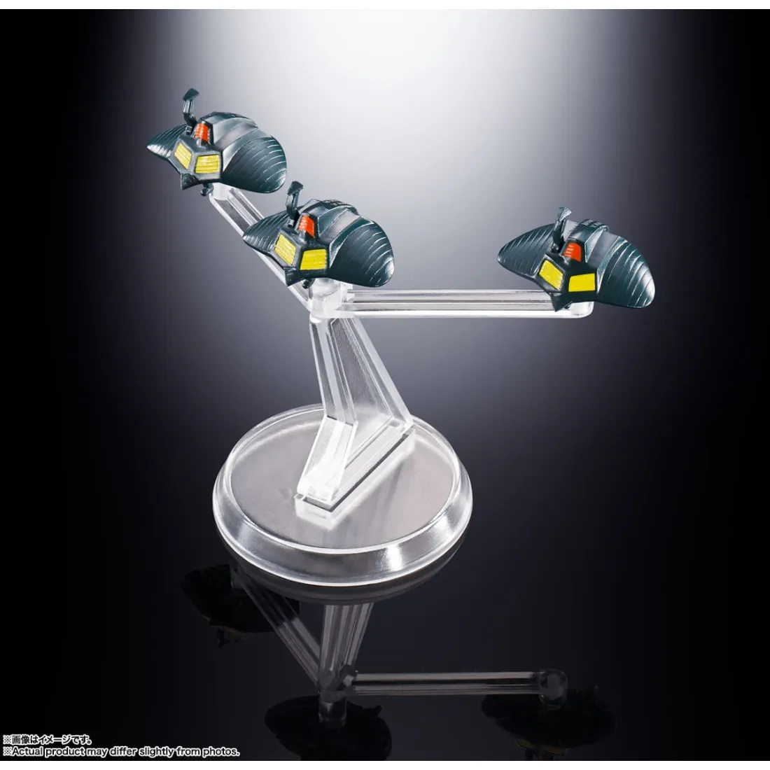 Découvrez le célèbre vaisseau d’X-OR dans la gamme Soul of Chogokin. Le set comprend la base Giran Disk, Morox qui vient se fixer dessous comme dans la série, 3 soucoupes ennemies, une mini figurine de Gavan et un socle.