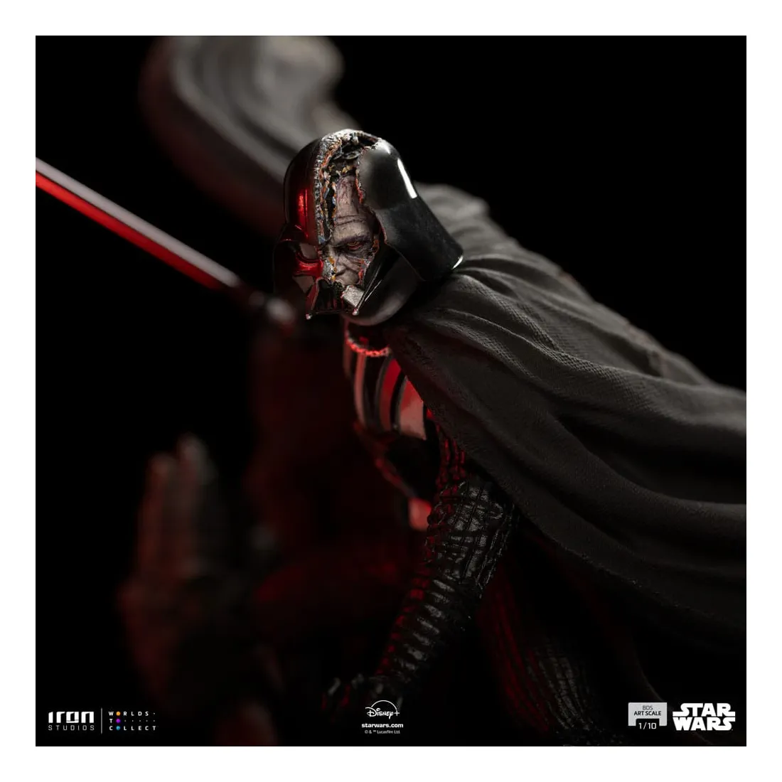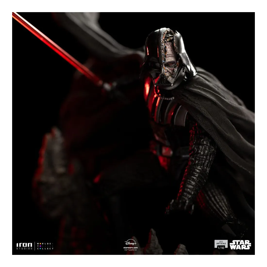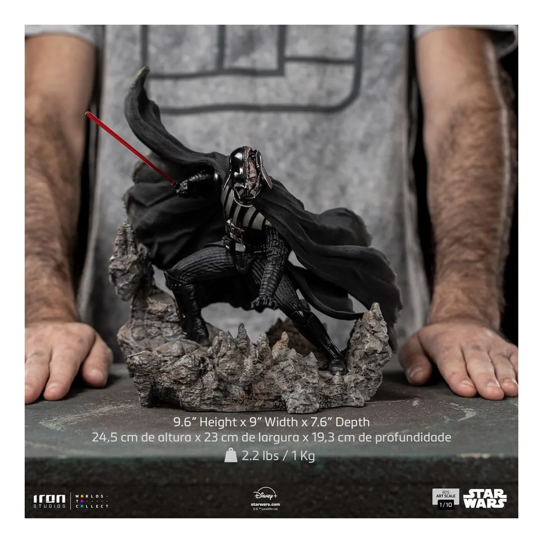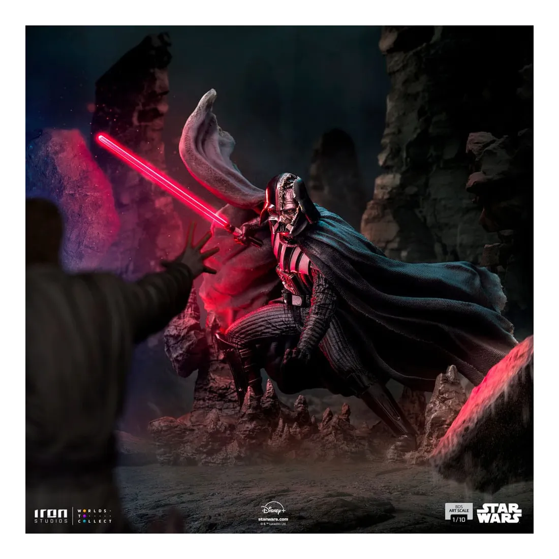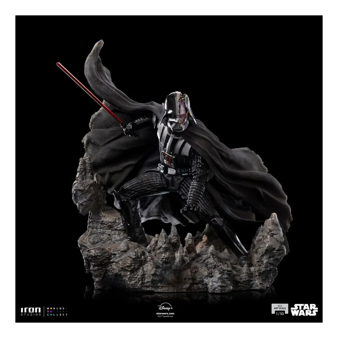 Pourchassant son ancien maître au-dessus des terres arides d’une lune rocheuse sans nom, le chevalier noir le plus puissant et le plus redoutable de l’Empire ordonne à son équipage de préparer son navire et s’en va, jurant que son adversaire sera seul. Dans une féroce bataille au sabre laser dans un labyrinthe de pinacles rocheux, face à un Obi-Wan Kenobi épuisé mais toujours déterminé, qui, tout en se concentrant sur les souvenirs des jeunes Luke et Leia, motivés à les protéger, parvient à porter un coup endommageant le casque de Vador et révélant partiellement un peu de ce qui restait de son visage humain. Brandissant son sabre laser rouge dans sa main droite, même s’il est blessé au dos, alimenté par le Côté Obscur de la Force, le Seigneur Sith soulève des morceaux de rochers pointus, prêt à les lancer sur son adversaire. Inspiré du sixième et dernier épisode de la première saison de l’émission Obi-Wan Kenobi du service de streaming Disney+, Iron Studios présente fièrement la statue « Darth Vader – Obi-Wan Kenobi – BDS Art Scale 1/10 », célébrant le mois de mai le 4, le Star Wars Day, d’une manière toute particulière !