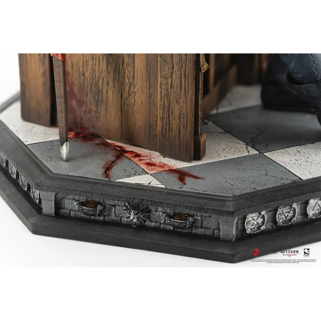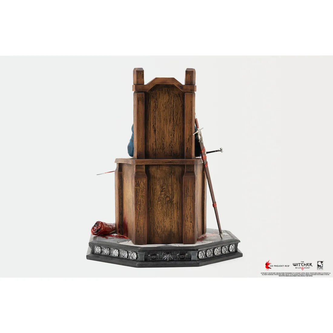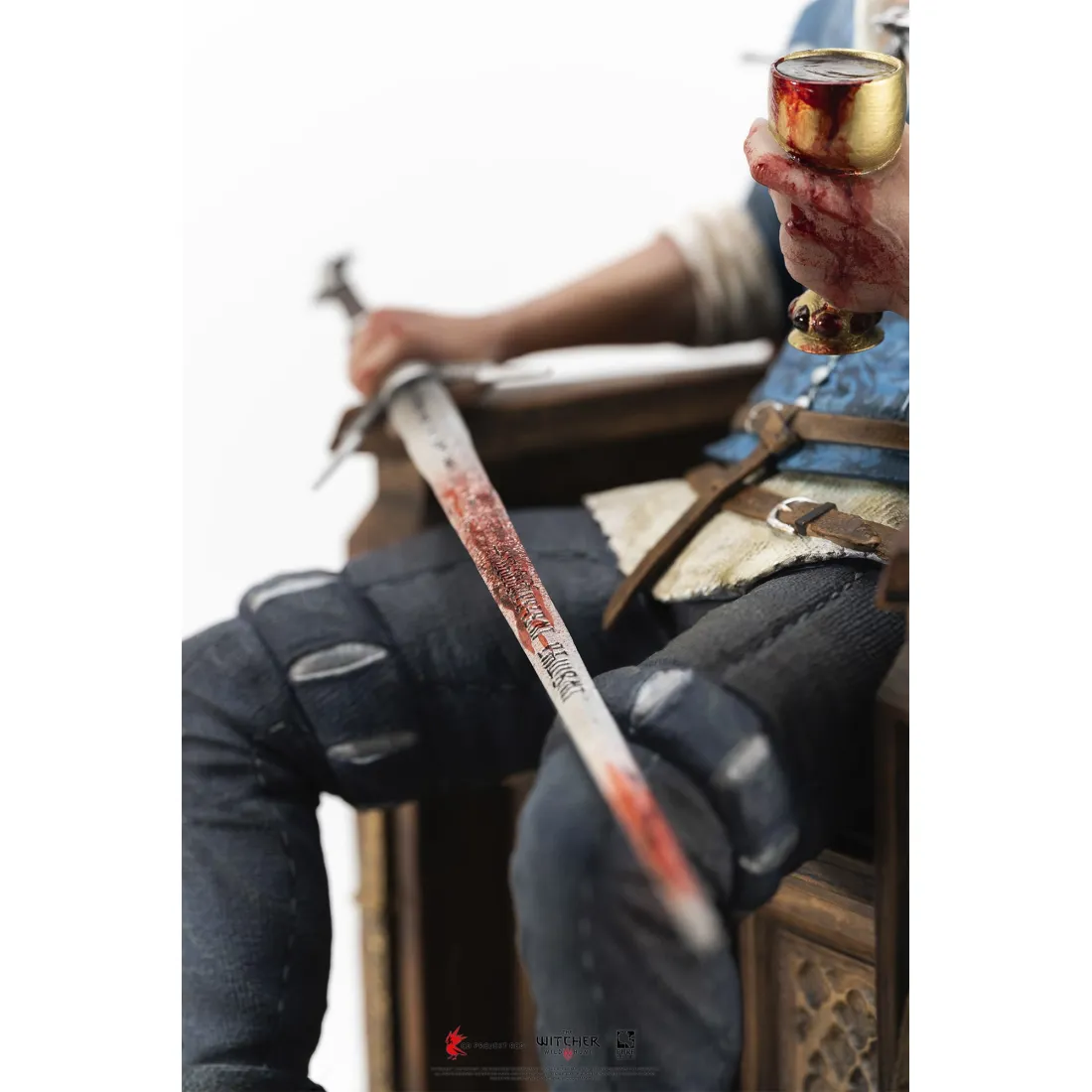 PureArts est fier de donner vie à la jaquette de Blood & Wine avec Geralt observant attentivement depuis son trône, tenant un calice ensanglanté d’une main et son épée d’argent de de l’École du Griffon améliorée de l’autre, et le bras coupé du vampire supérieur Dettlaff à ses pieds.