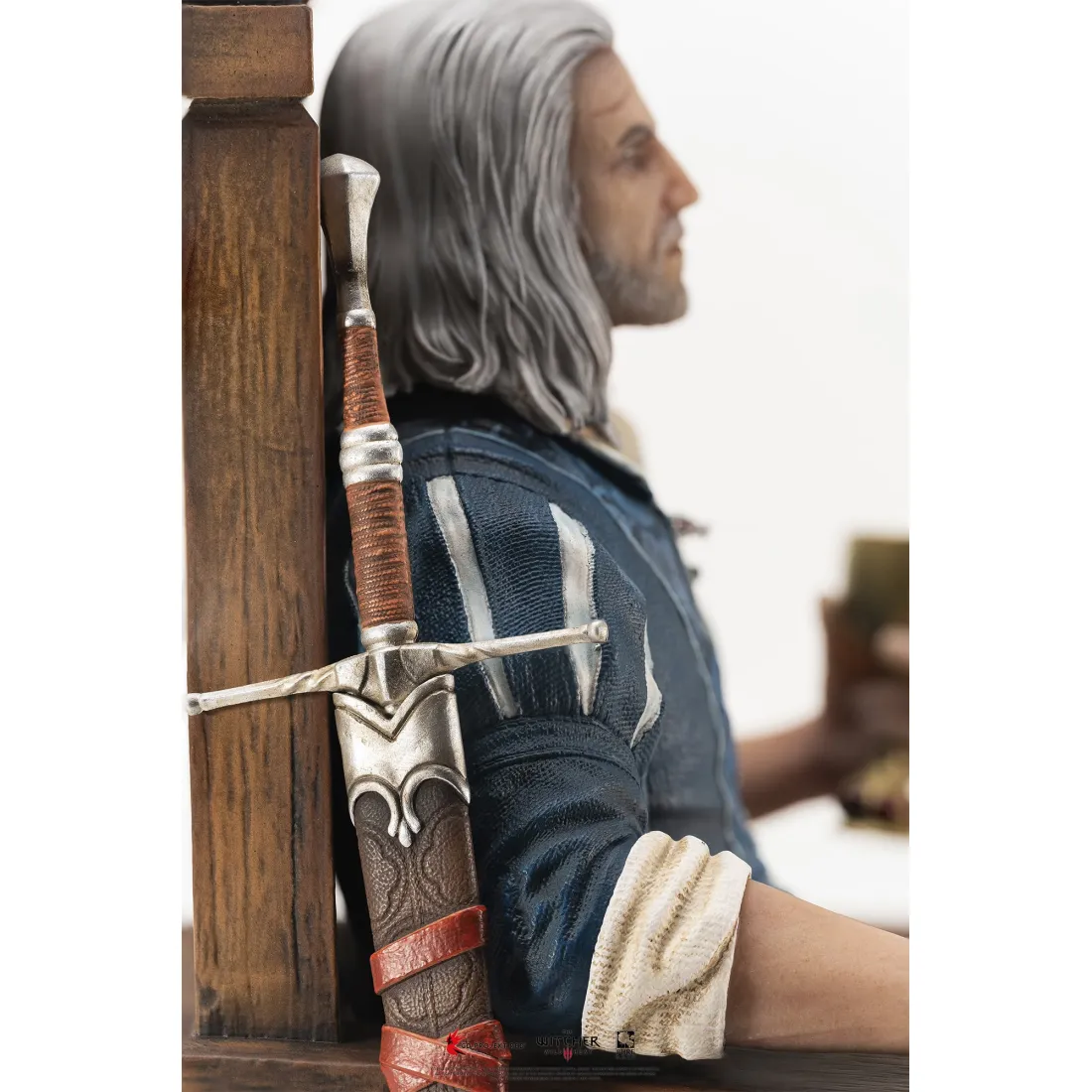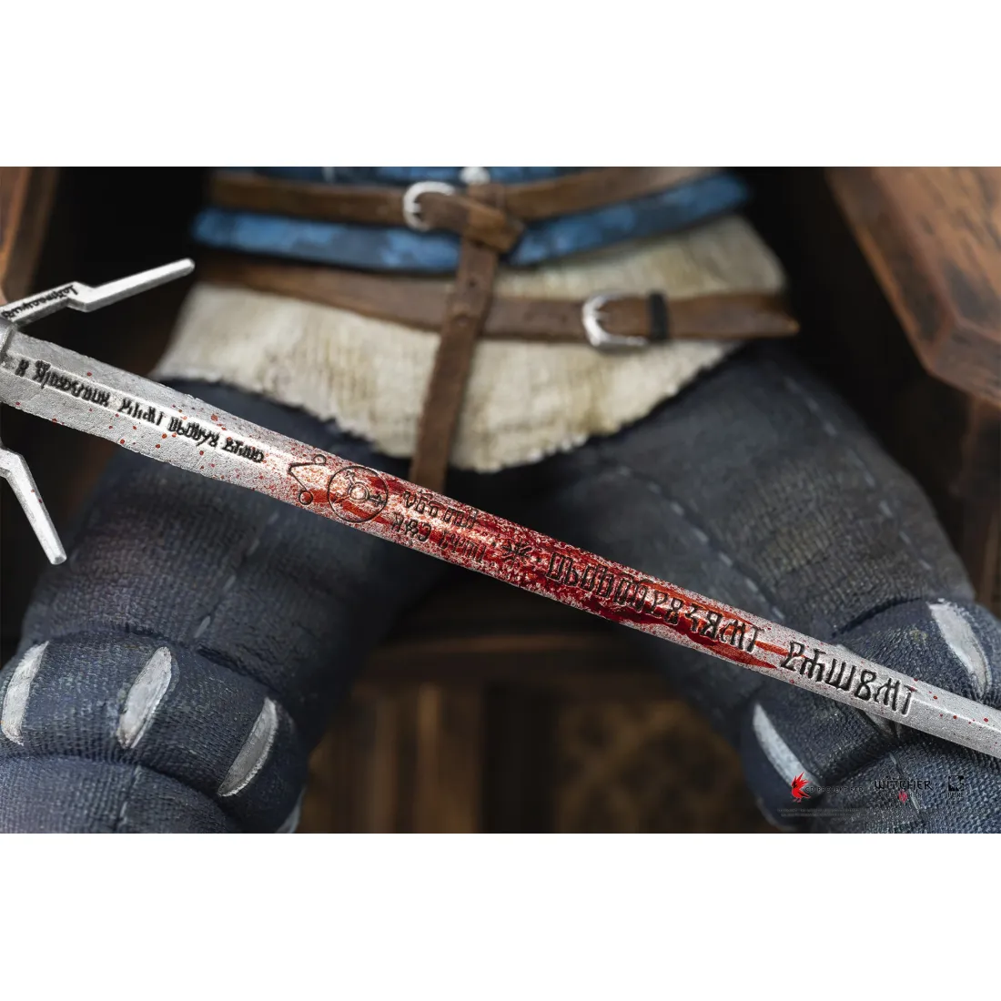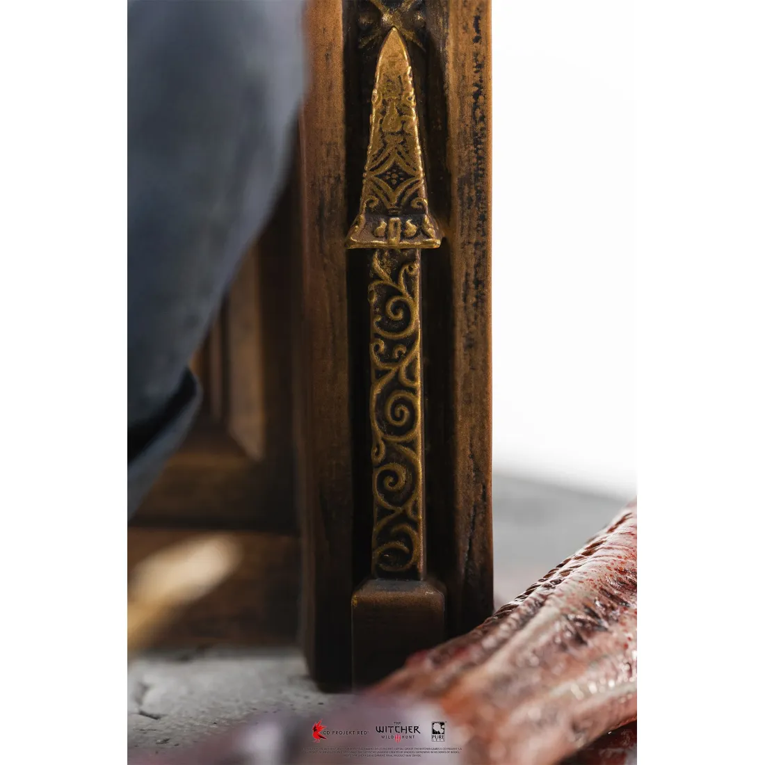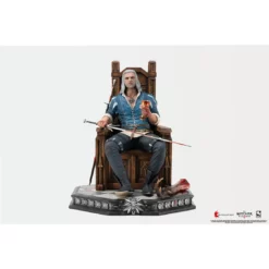 PureArts est fier de donner vie à la jaquette de Blood & Wine avec Geralt observant attentivement depuis son trône, tenant un calice ensanglanté d’une main et son épée d’argent de de l’École du Griffon améliorée de l’autre, et le bras coupé du vampire supérieur Dettlaff à ses pieds.